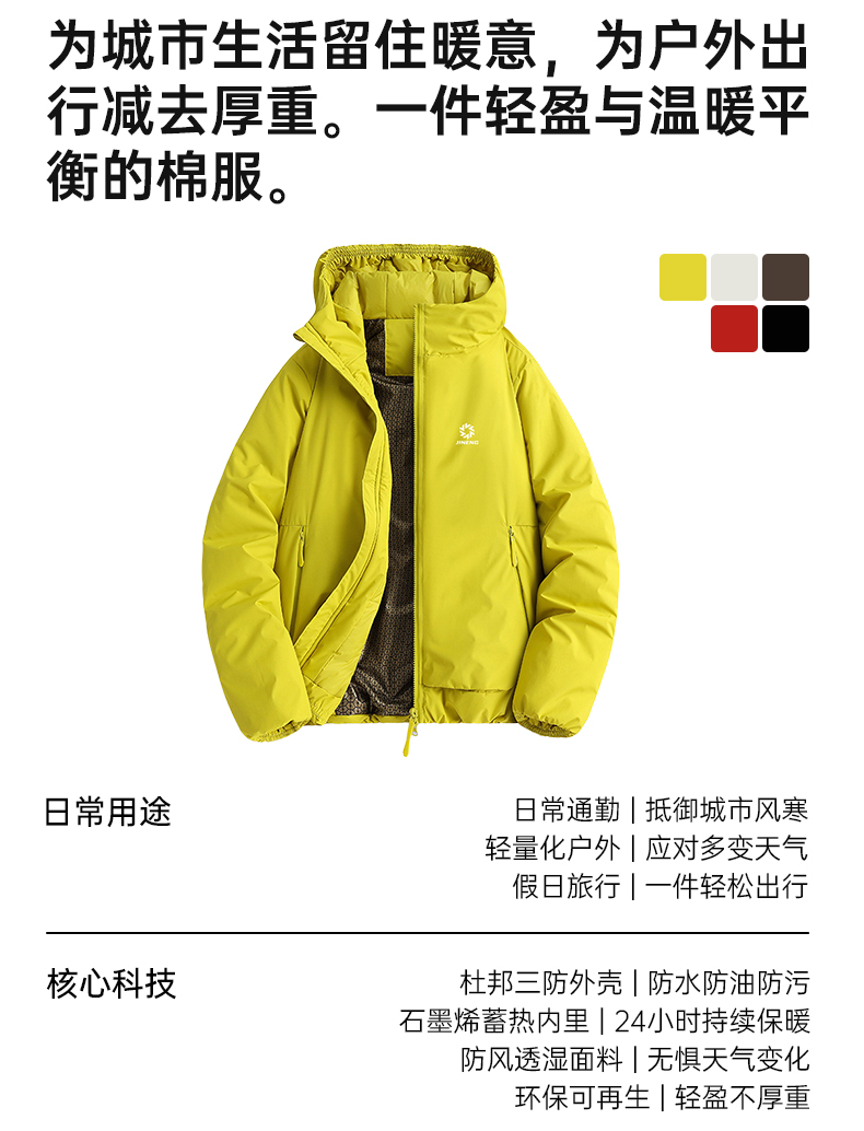 NOME 石墨烯户外棉服 男女同款 户外棉服石墨烯内里温暖加备;防水防污防风,内胆可拆卸,OVERSIZE版型