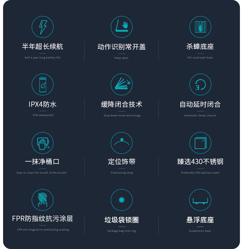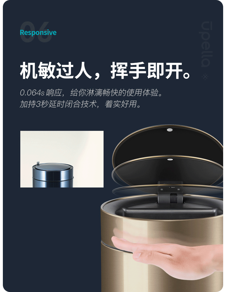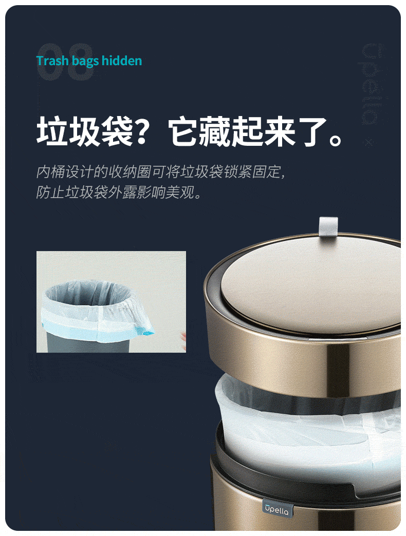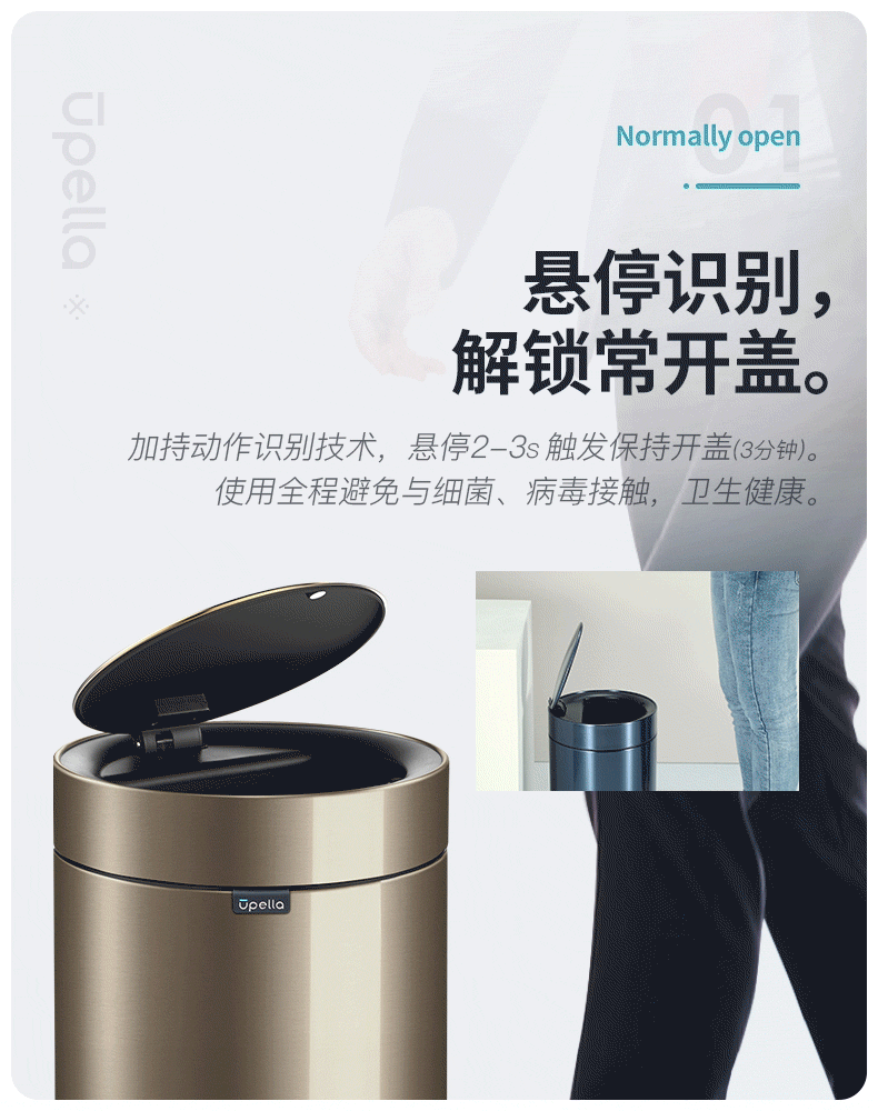 优百纳/Upella 欧式创意家用智能垃圾桶不锈钢自动感应客厅办公室
