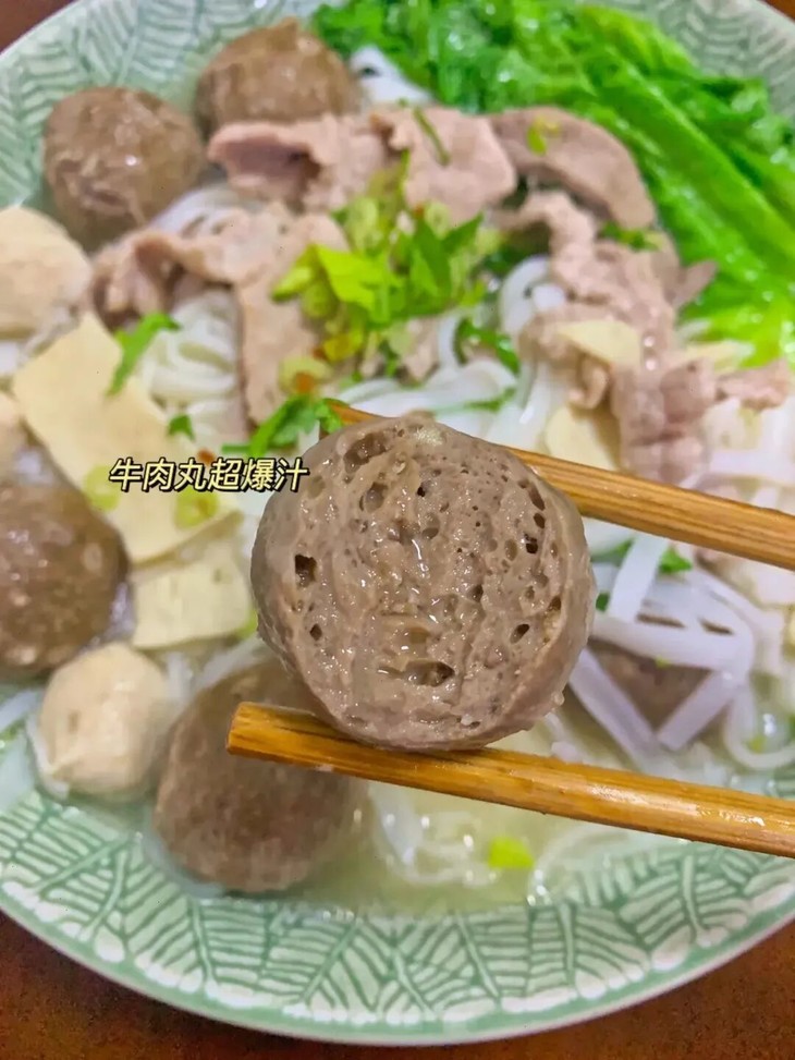 在保证丸子鲜嫩弹牙的同时,肥瘦相间,入口Q 弹爽脆,并且没有什么油腻感,保留了牛肉特殊的香味~