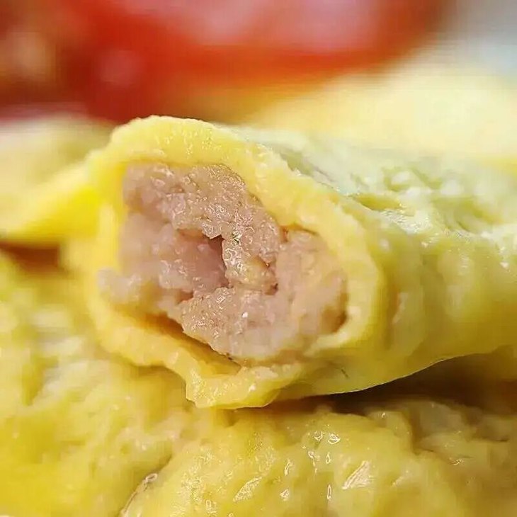 李老二家的蛋饺,造型漂亮颜色诱人 ,肉馅丸裹着金黄的蛋皮,咬一口,肉质混着蛋香充斥整个口腔。