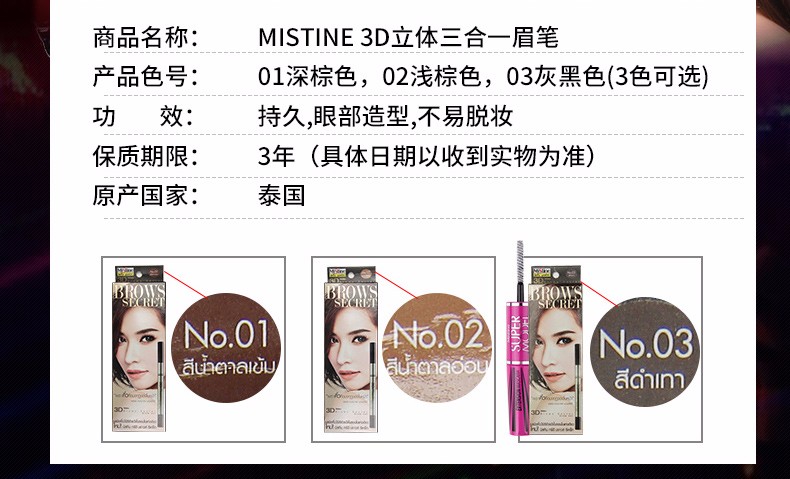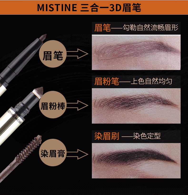 MISTINE 蜜丝婷 3D立体三合一眉笔 02# 浅棕色 泰国