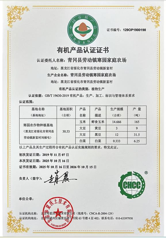 产地:黑龙江省绥化市青冈县寒园有机农场