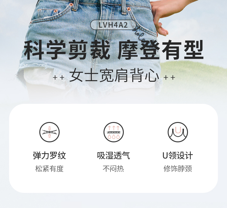 都市丽人棉质宽肩背心罗纹棉时尚美搭易搭衣宽肩背心LVH4A2