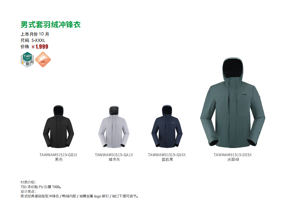 探路者男式套羽绒冲锋衣TAWWAM91519