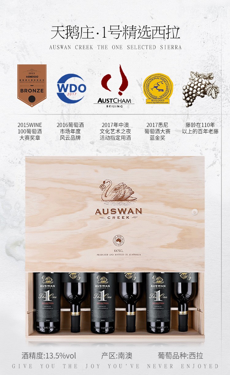 【澳大利亚国会用酒】天鹅庄1号精选西拉 澳大利亚 13.5%vol