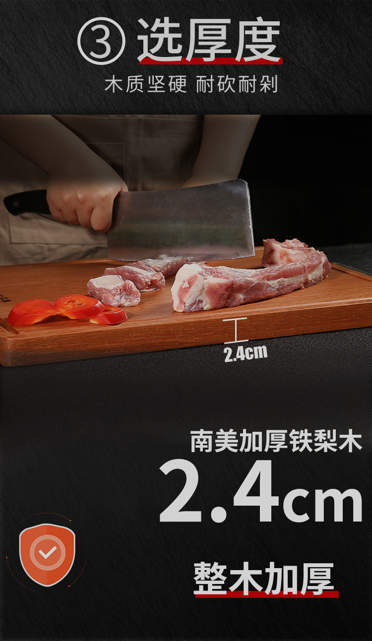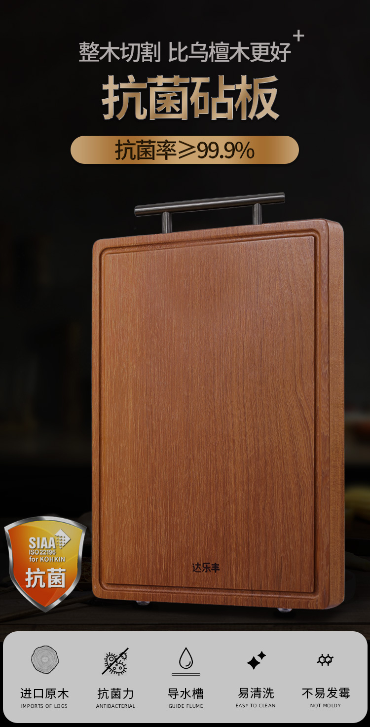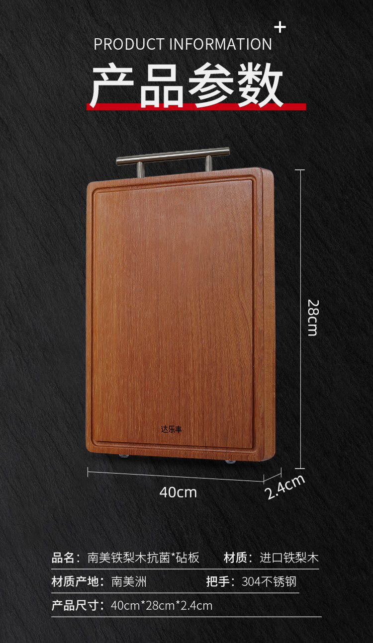 【已下架】积分换购 | 抗菌效果高达99.9% 超高密度 无惧砍剁 | 达乐丰 抗菌南美铁梨木整木菜板40*28*2.4CM [福利品]