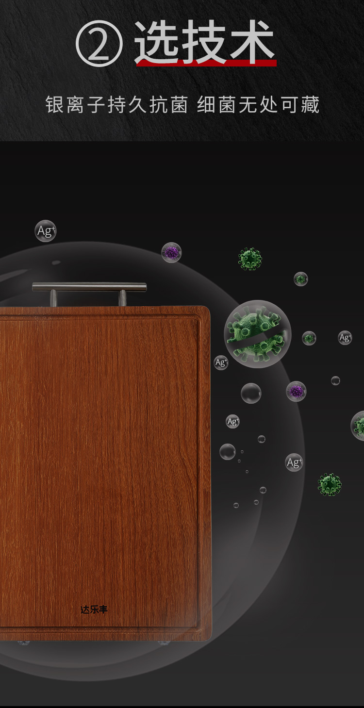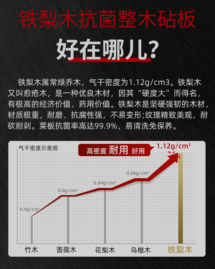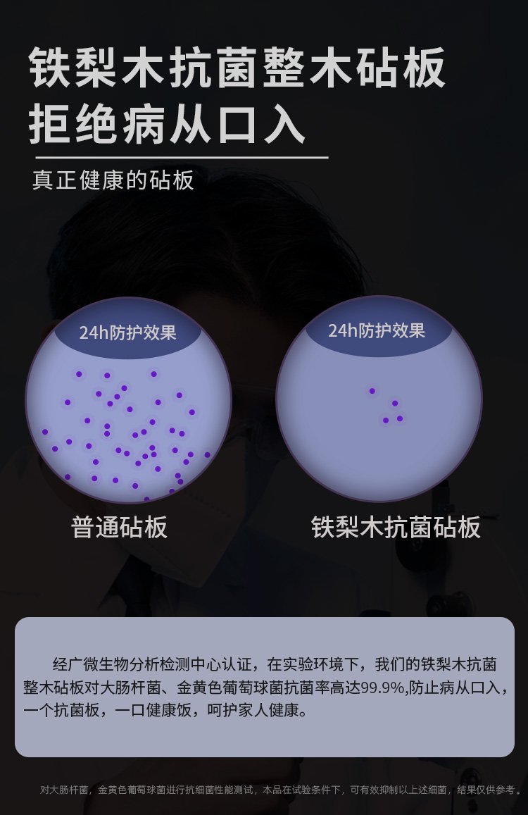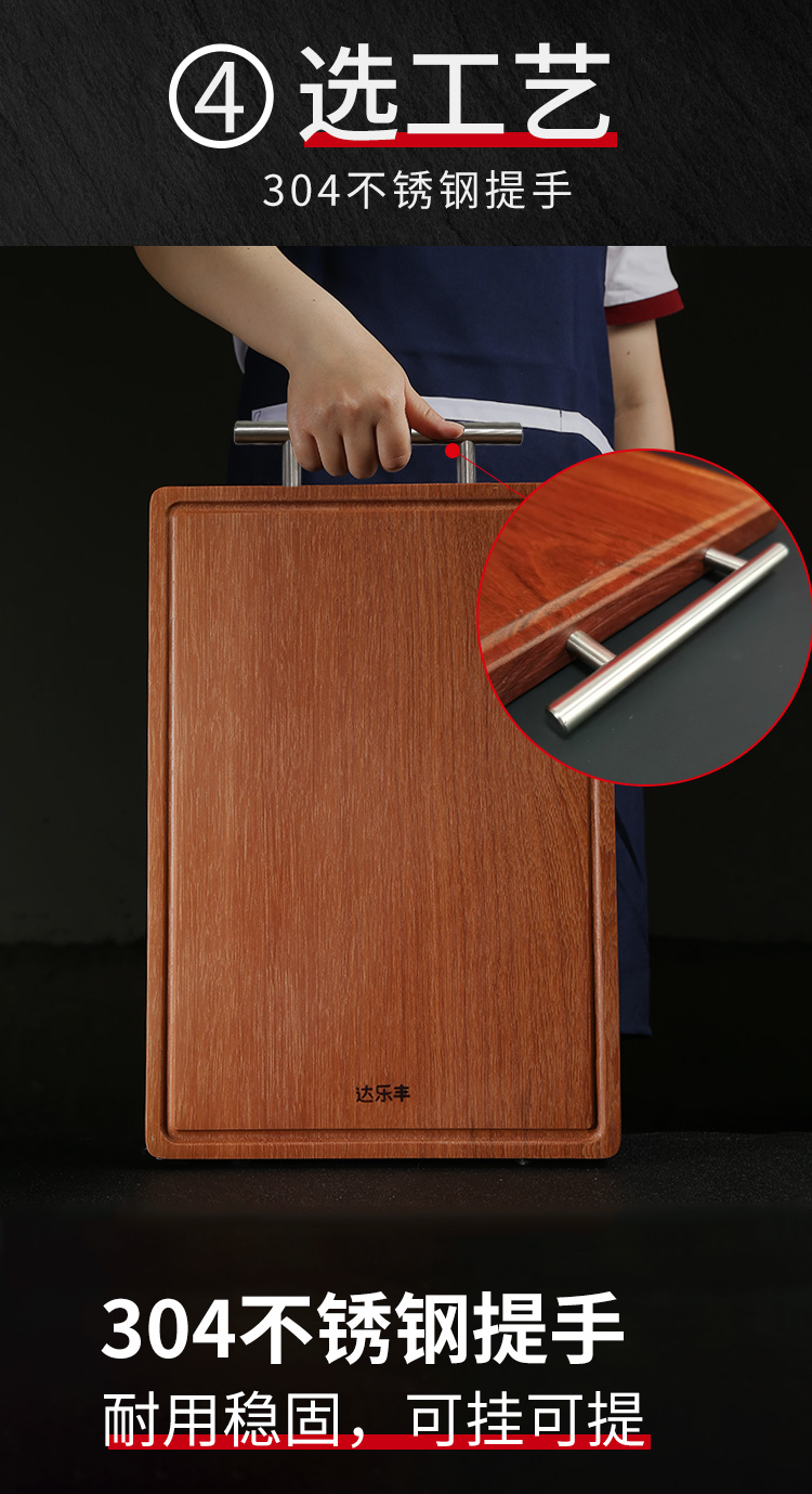 【已下架】积分换购 | 抗菌效果高达99.9% 超高密度 无惧砍剁 | 达乐丰 抗菌南美铁梨木整木菜板40*28*2.4CM [福利品]