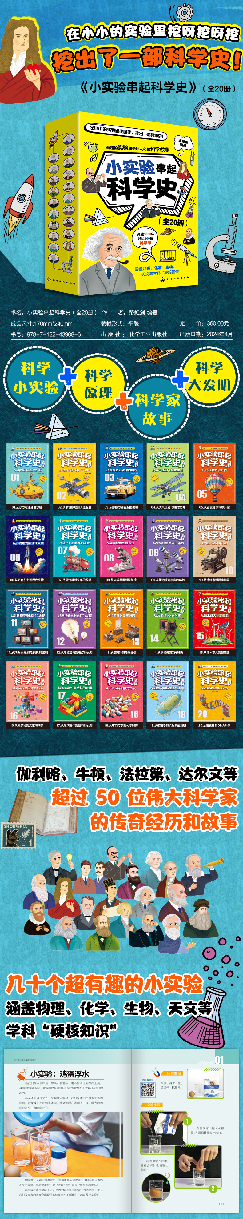 《小实验串起科学史》全20册 8-14岁 科学小实验、科学原理、科学家故事、科学大发明 伽利略、牛顿、法拉第、达尔文等超过50位伟大科学家的传奇经历和故事