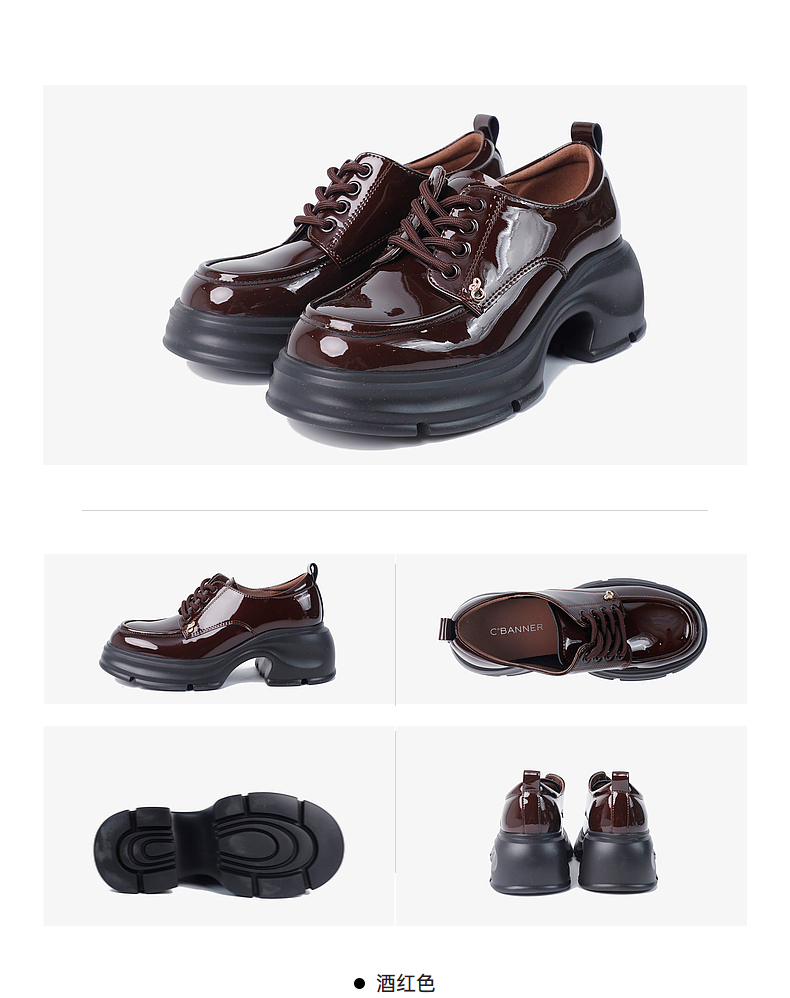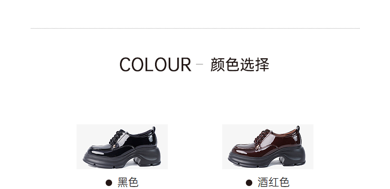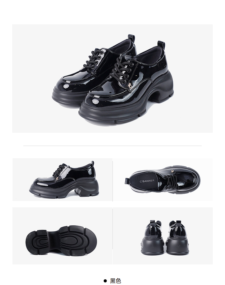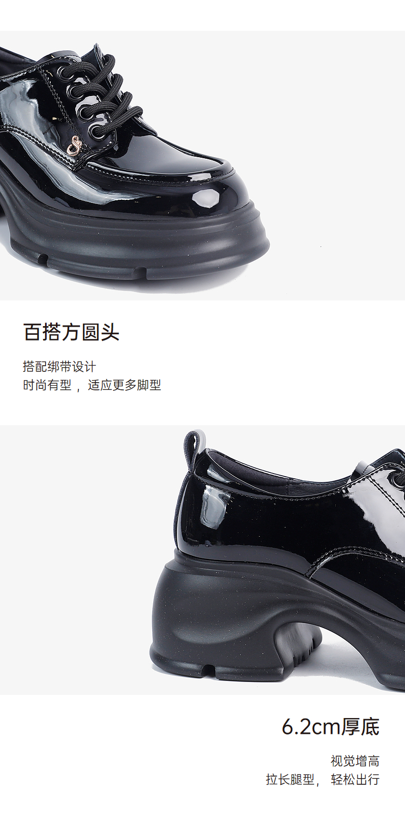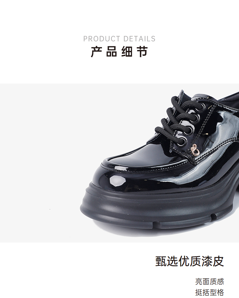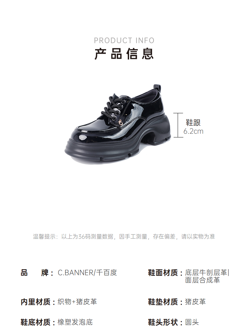 千百度牛津鞋厚底乐福鞋女款秋季增高深口JK黑色小皮鞋A24480381