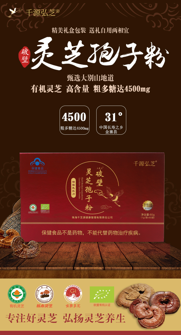 有机破壁灵芝孢子粉(灵芝粗多糖4500mg) 商品图2