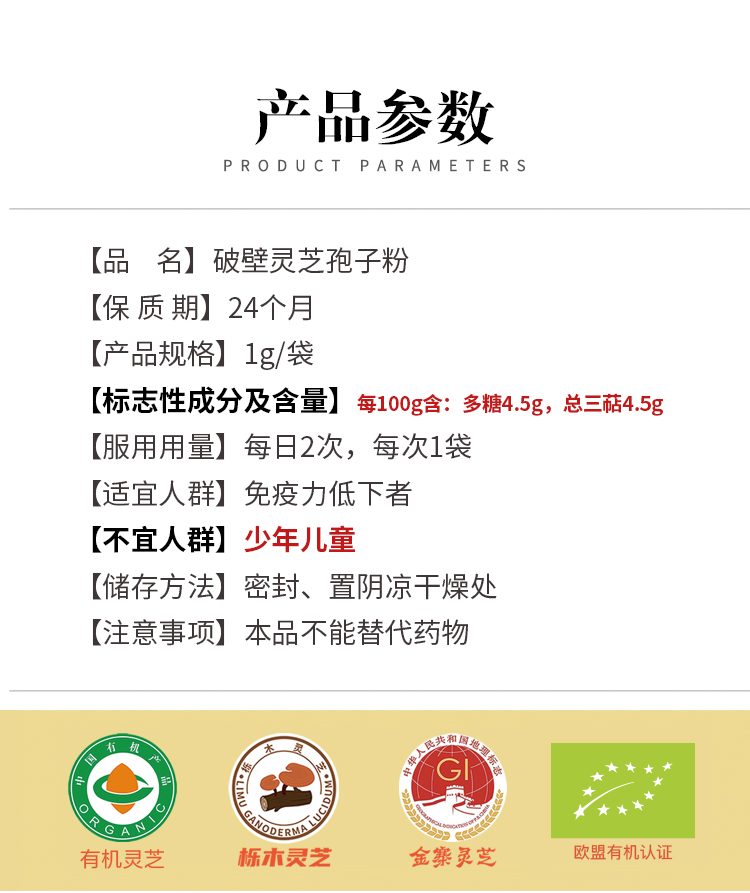 有机破壁灵芝孢子粉(灵芝粗多糖4500mg) 商品图4