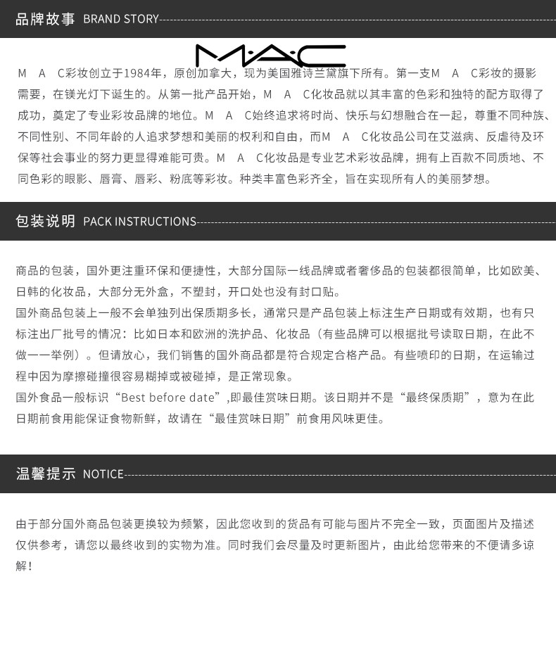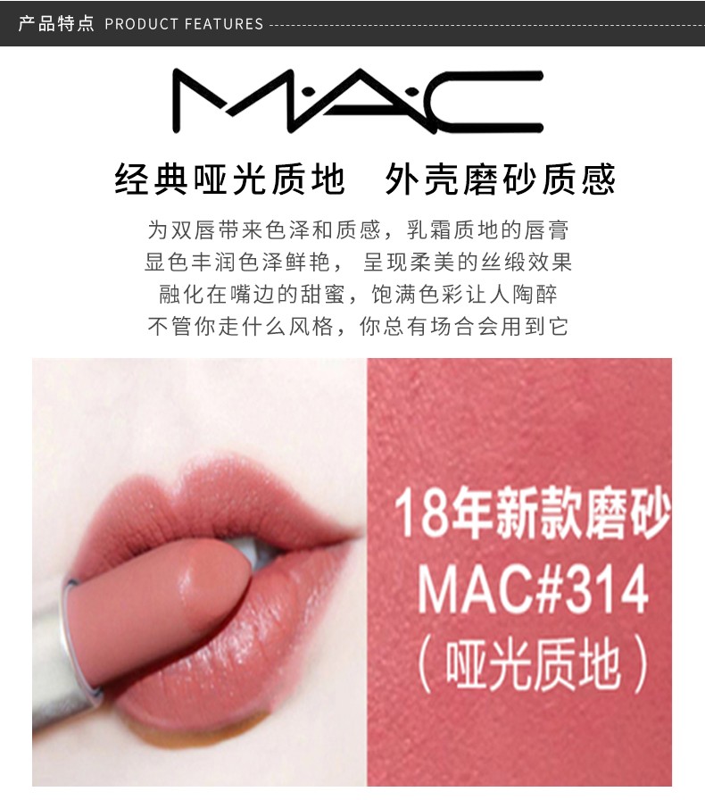 外色内润,与时尚一吻定情,魅可(MAC)哑光磨砂时尚唇膏3g!哑光雾面触感加高度饱和显色,诠释唇部色彩,将性感的“唇”情本色演绎!持久唇色不沾杯,一次补妆维持的亮丽唇色,唇色诱惑让他无法抗拒!
