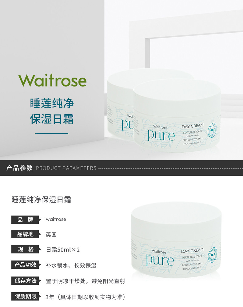 WAITROSE 纯净日霜 50ML*2罐 英国