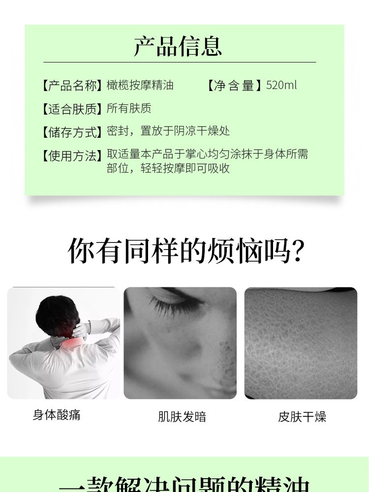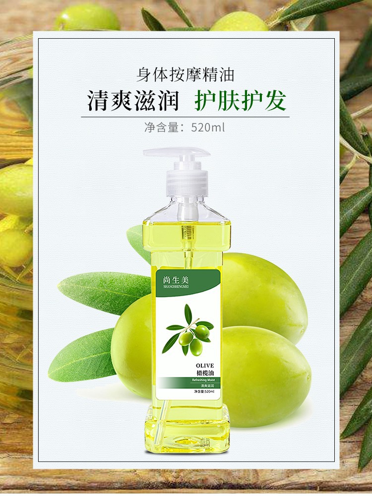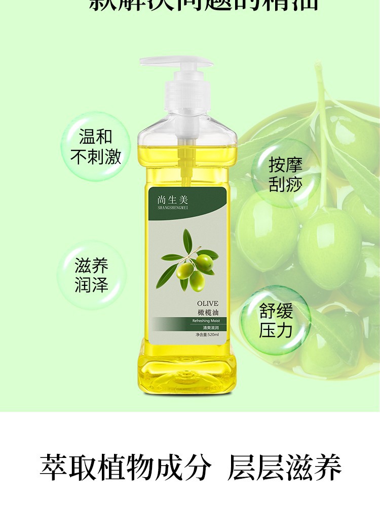 橄榄按摩油推拿全身爽滑润肤通经活络美容院spa刮痧开背现货批发