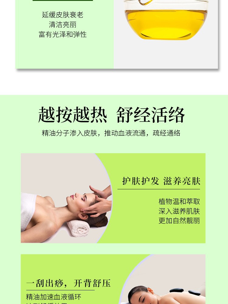 艾草艾叶按摩精油身体通经络肩颈发热刮痧护肤开背正品美容院推油