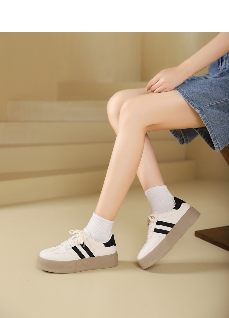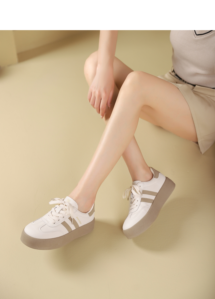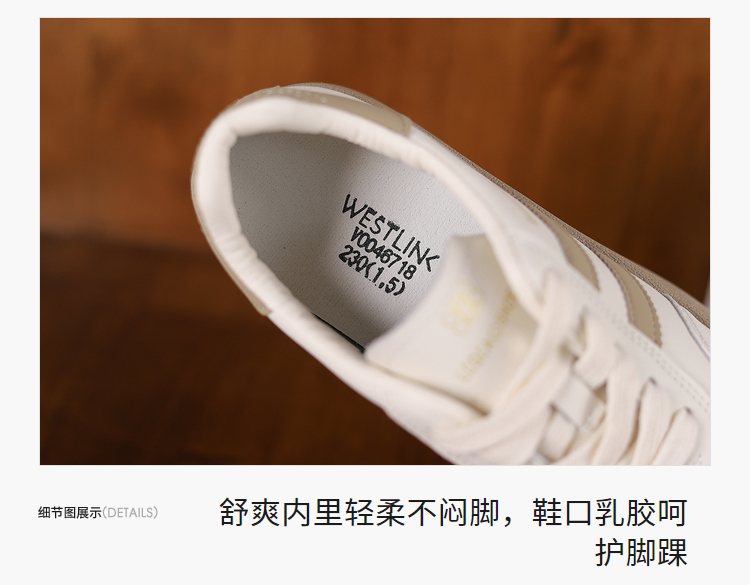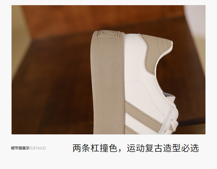 【限时秒杀】西遇厚底德训鞋女新款复古美式学院风撞色小白鞋低帮板鞋V0046718