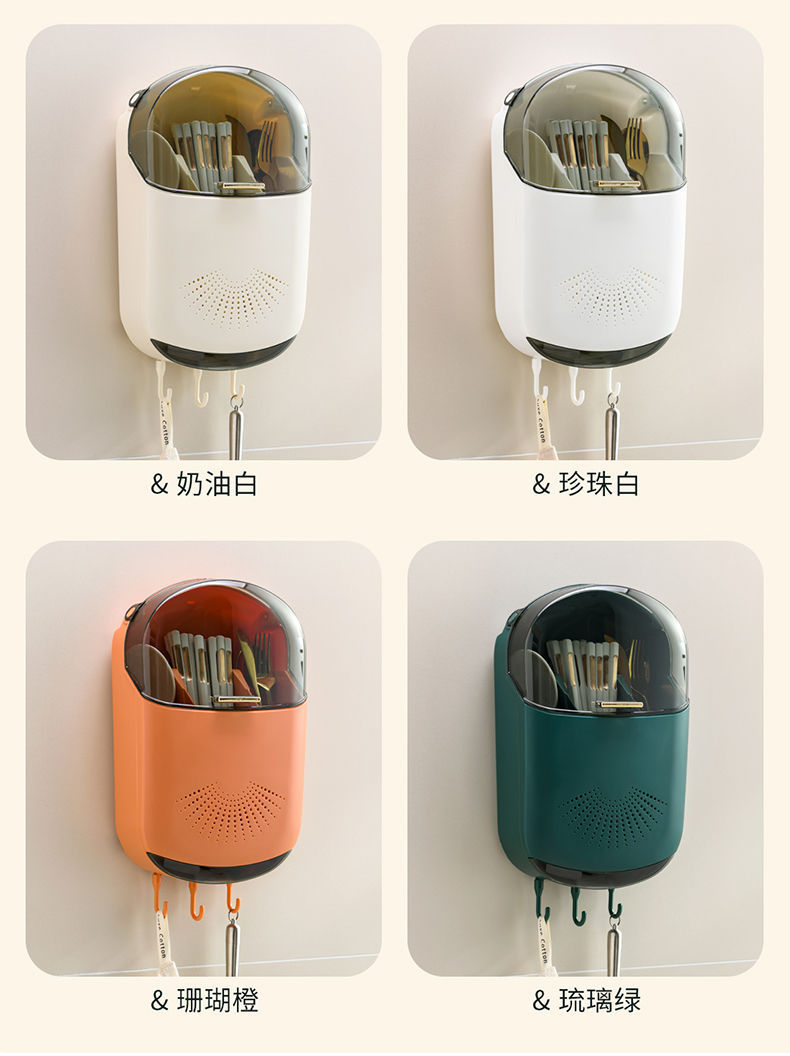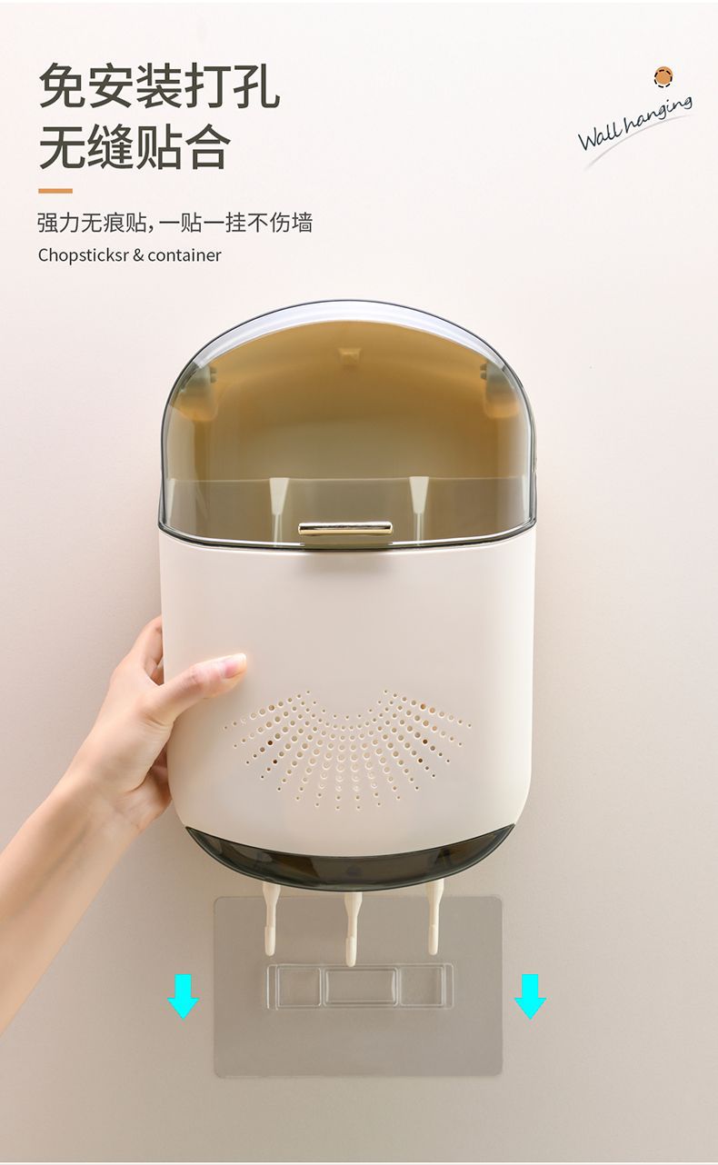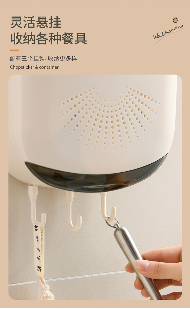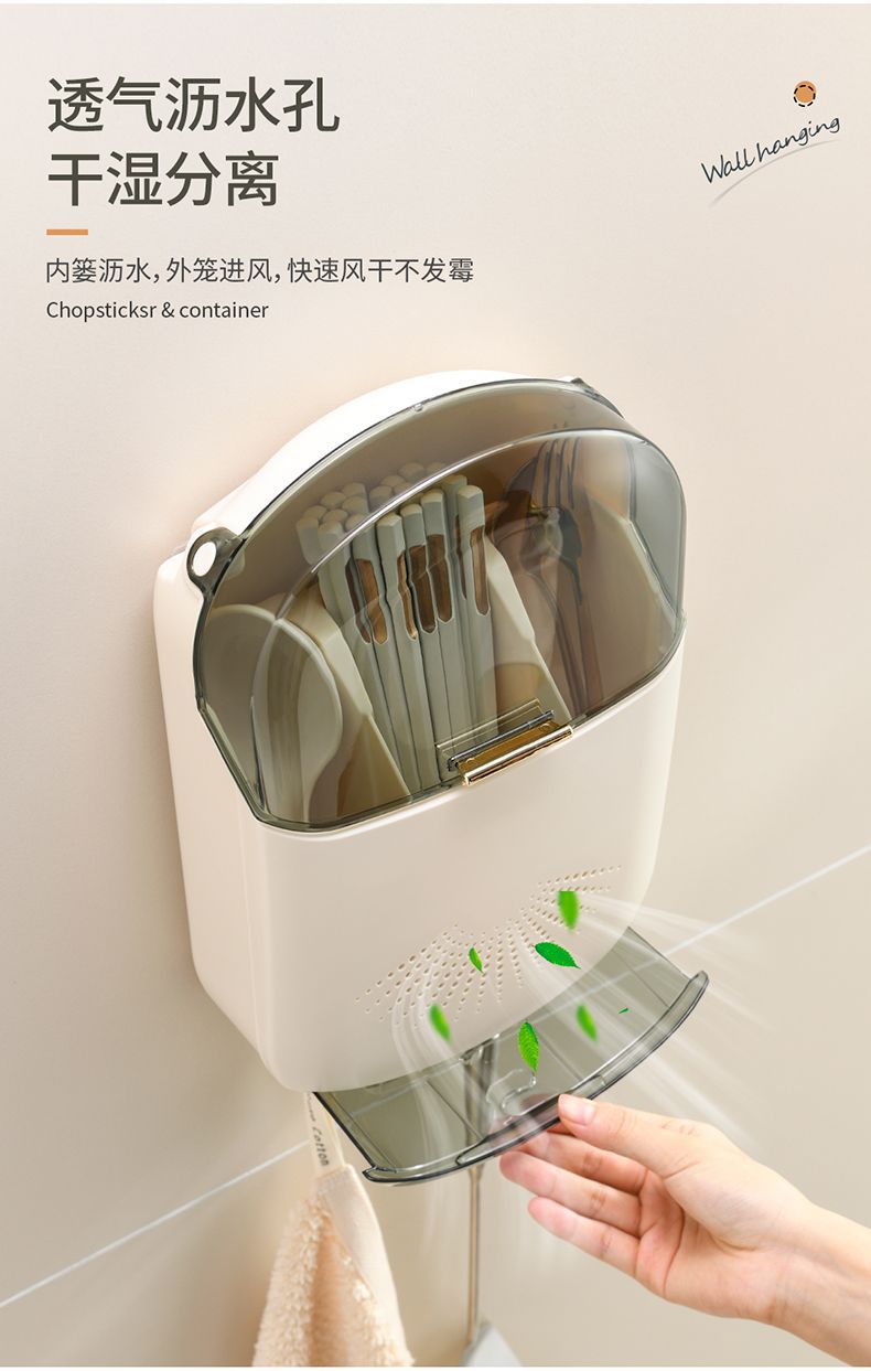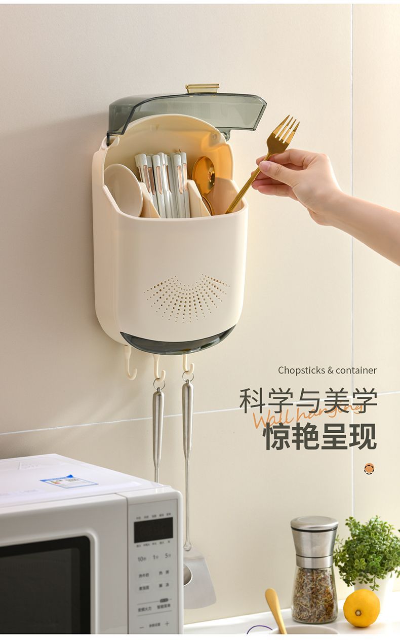 【倾斜式收纳架!餐具沥水收纳挂架】耐用易清洗 家居免打孔筷子筒壁挂式厨房沥水防尘置物架挂