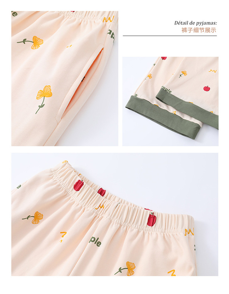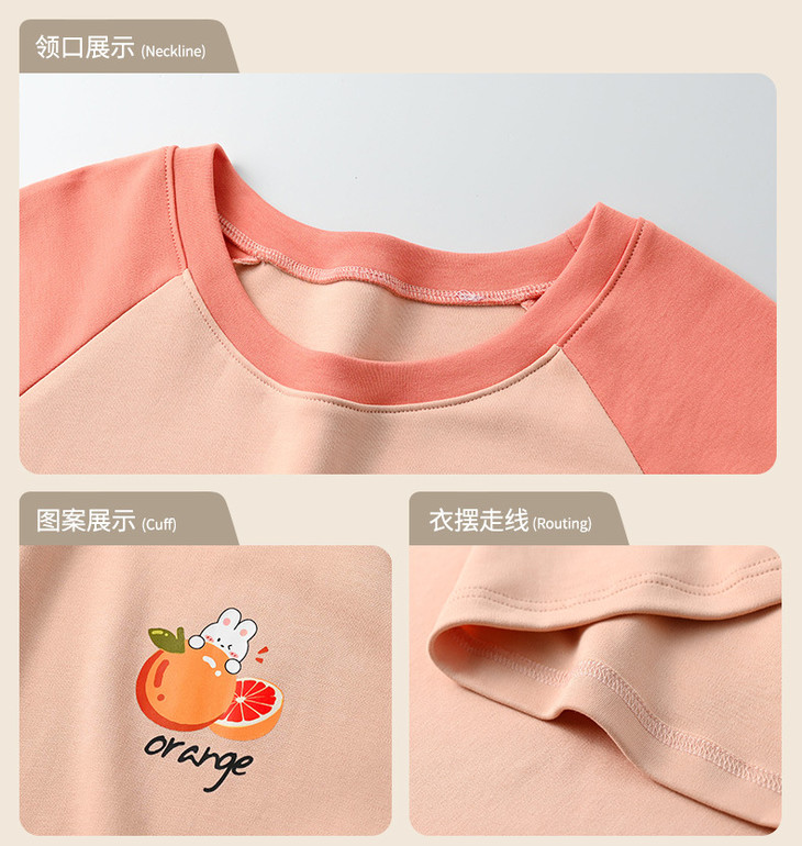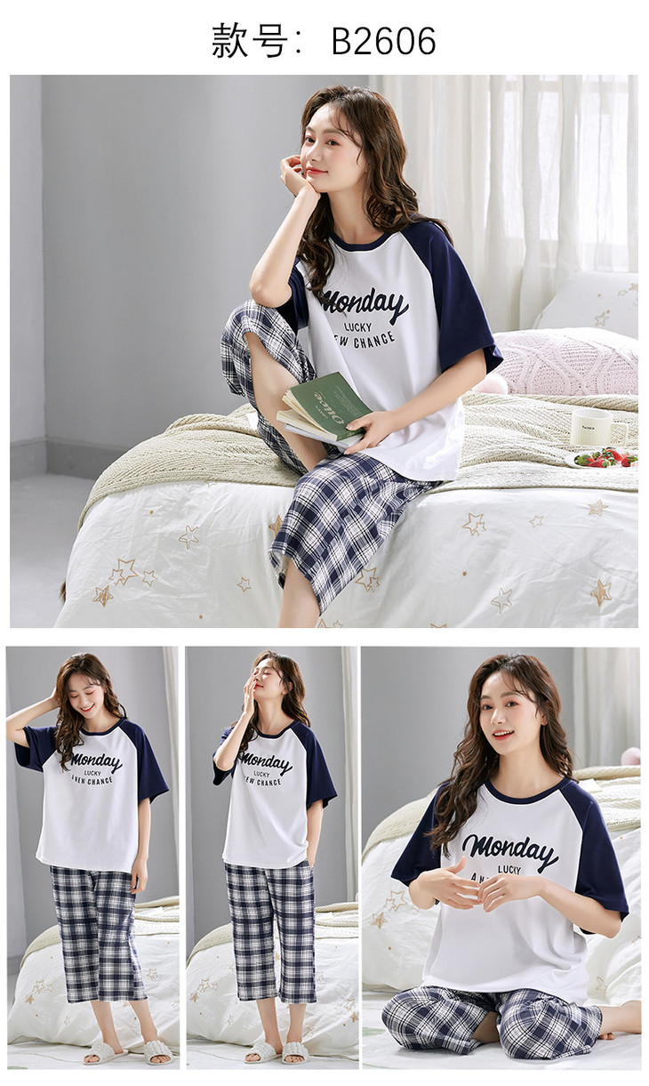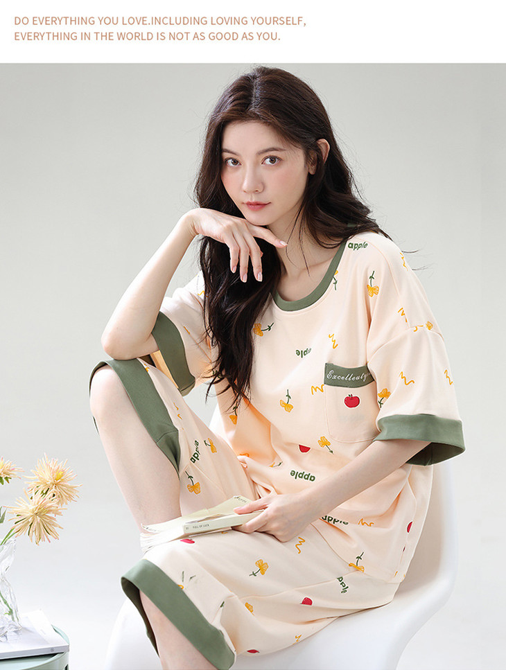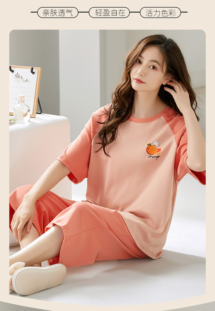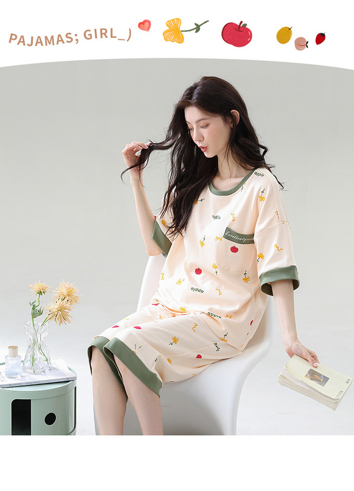 夏季短袖七分裤睡衣女卡通薄款可爱带胸垫家居服可外穿套装
