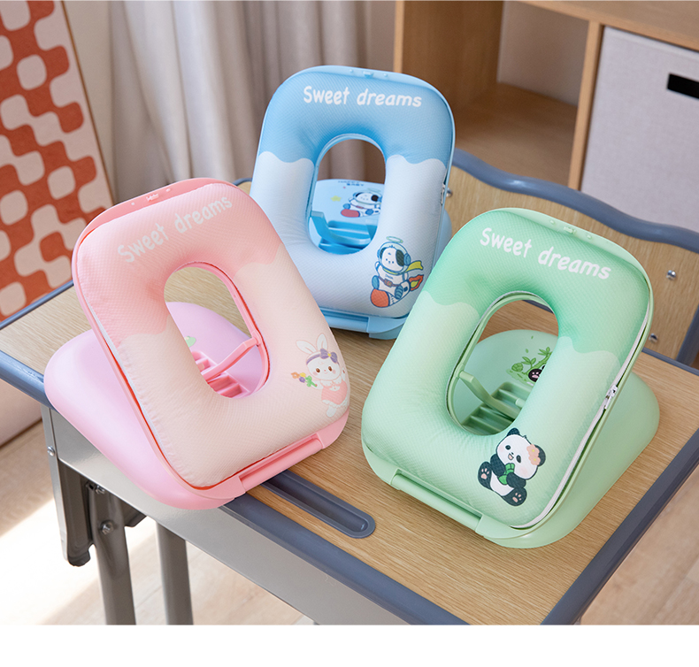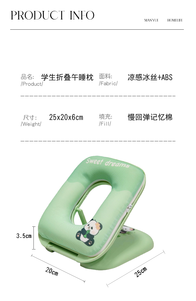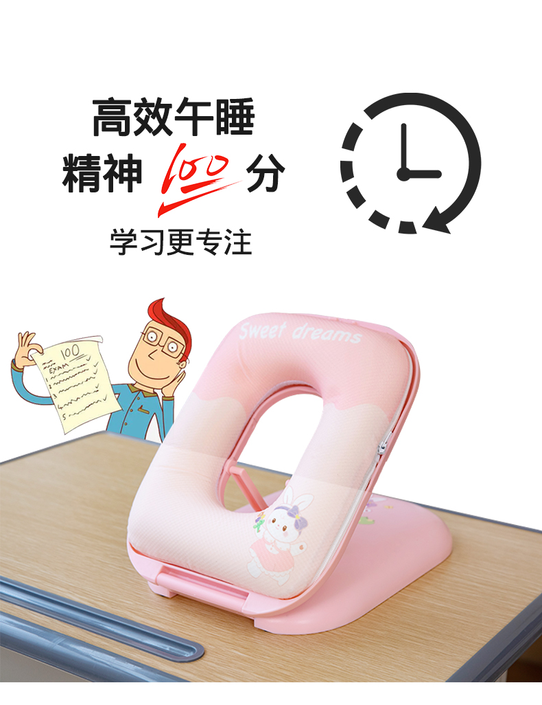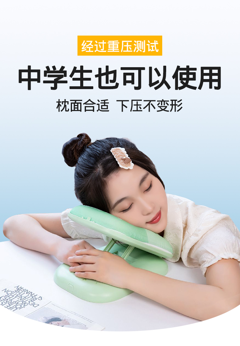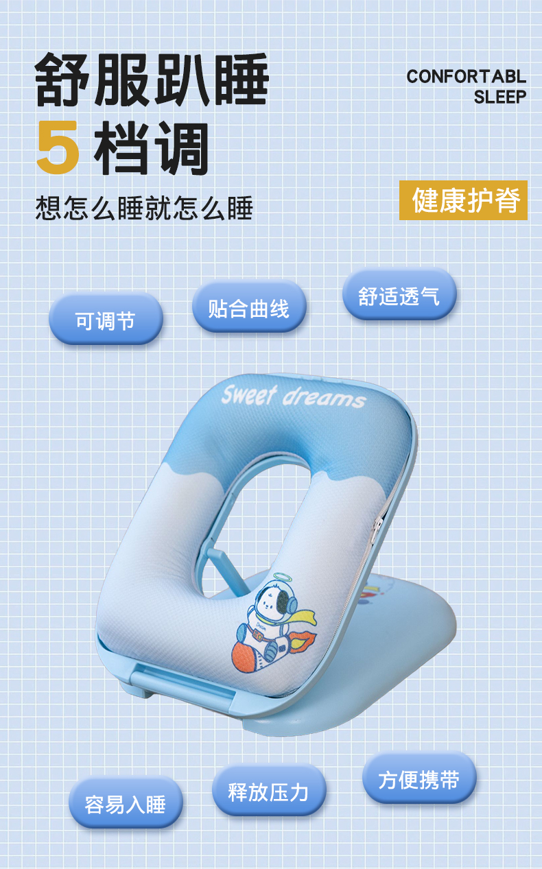 自然醒学生折叠款五档调节午睡枕冰丝夏凉卡通枕趴睡办公室便捷午睡神器QYL