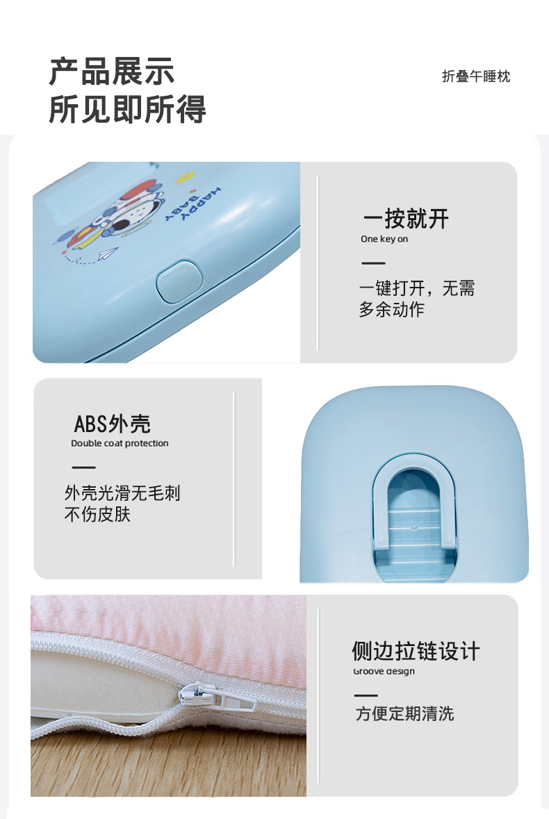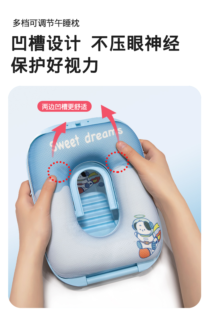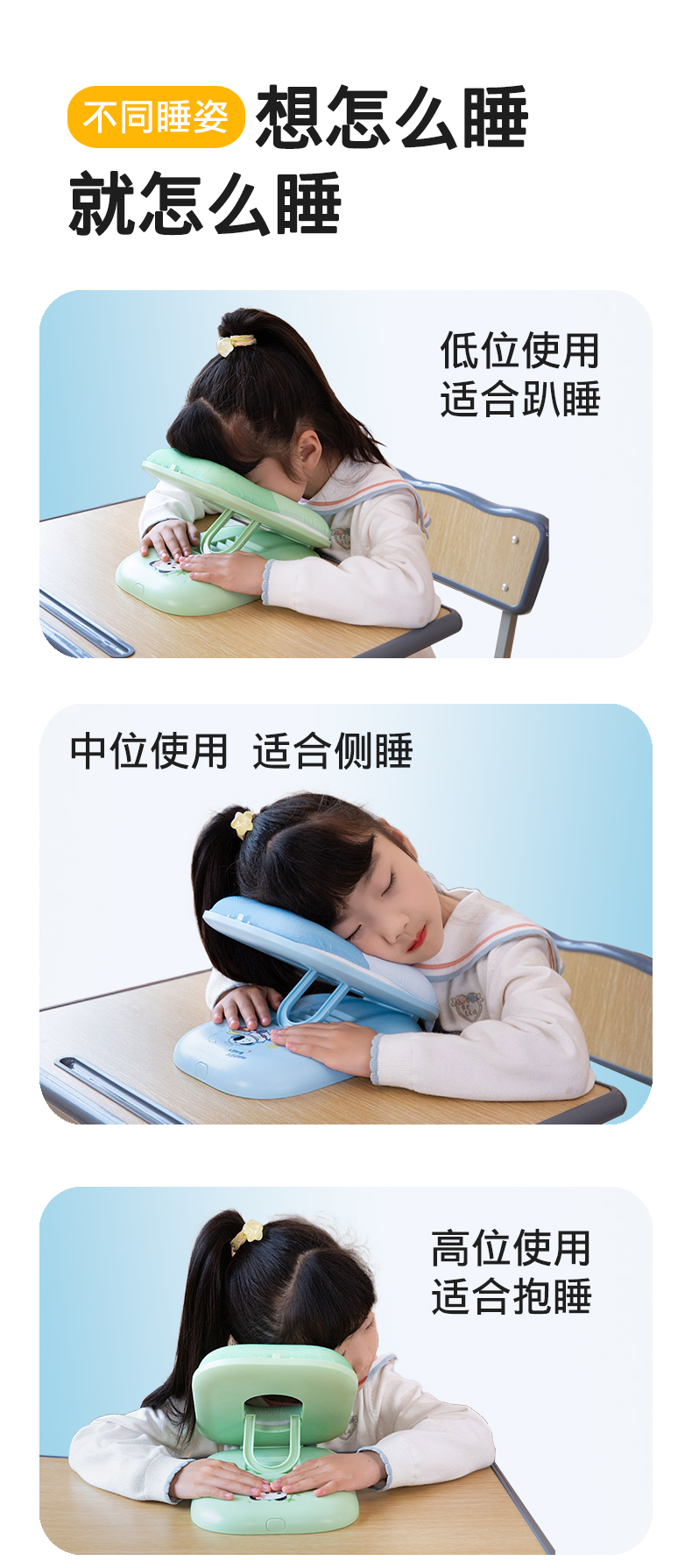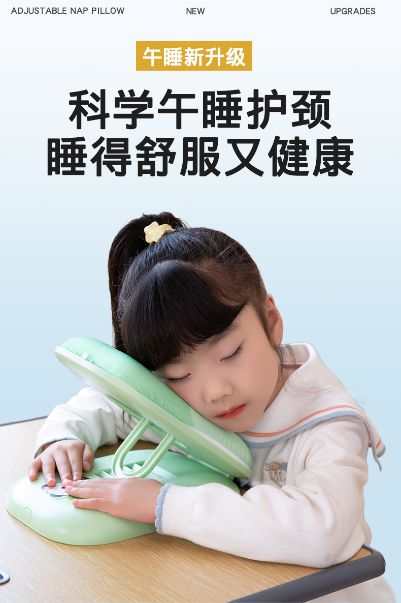 自然醒学生折叠款五档调节午睡枕冰丝夏凉卡通枕趴睡办公室便捷午睡神器QYL