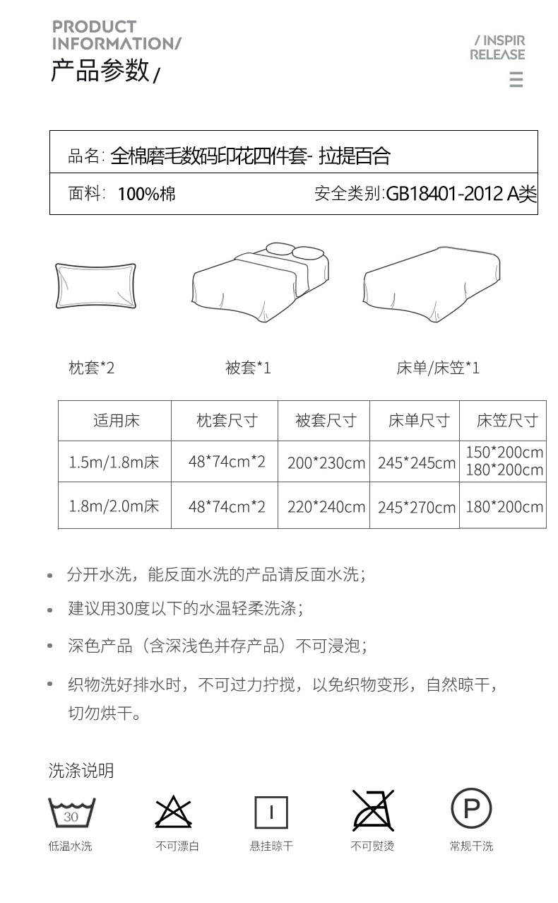 【热卖推荐】自然醒A类数码印花磨毛四件套AN