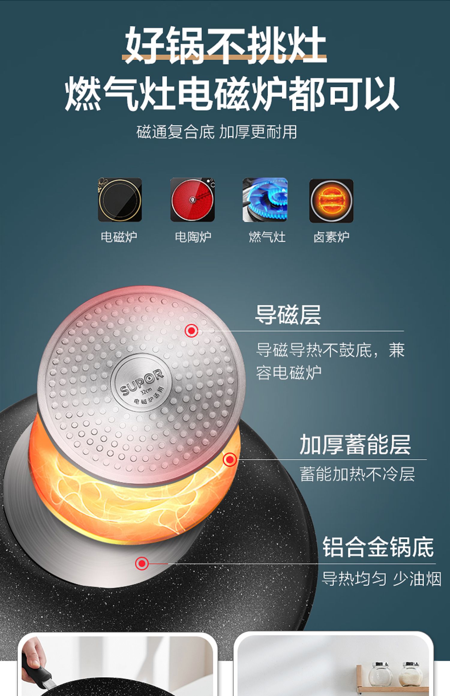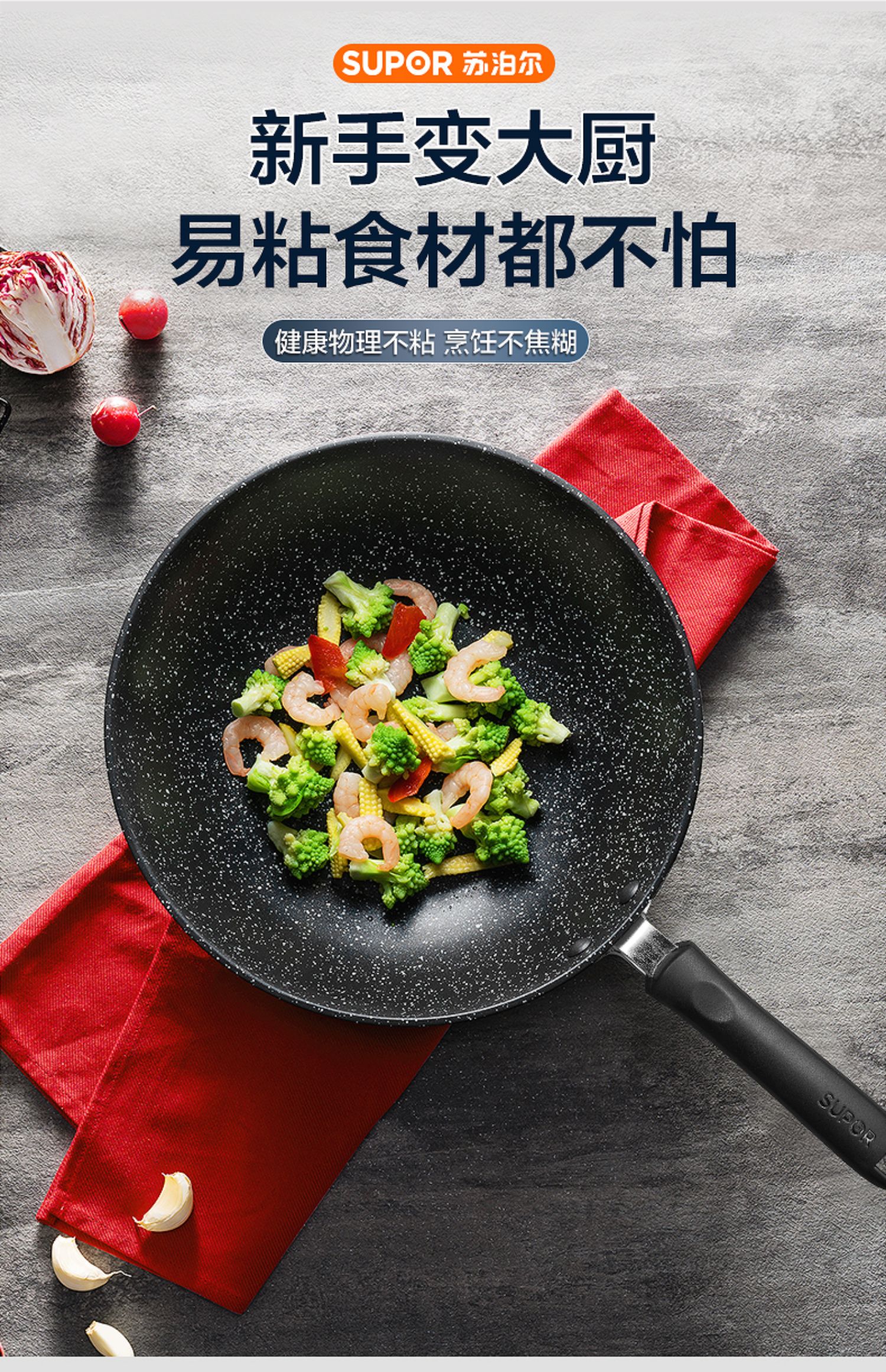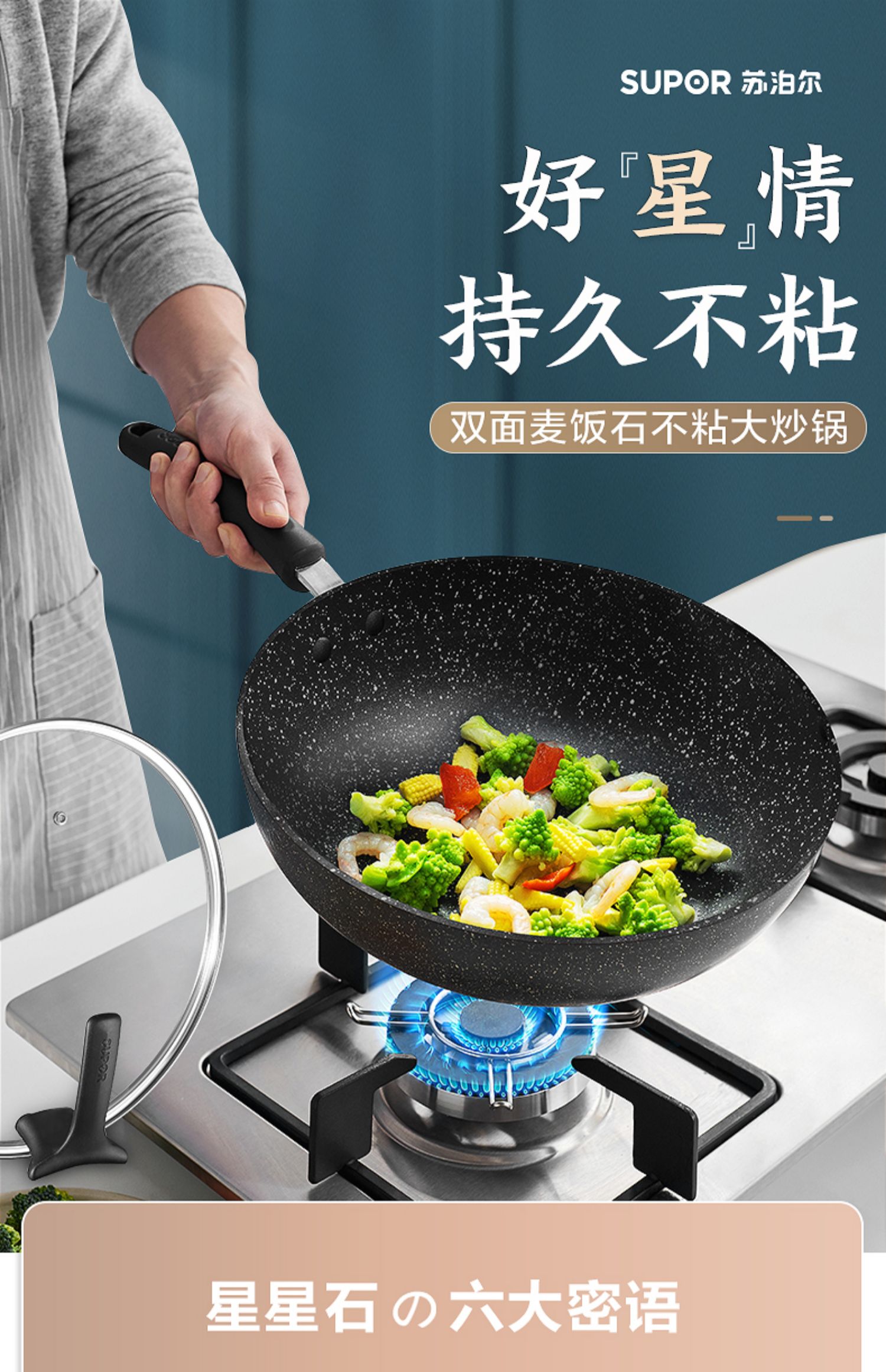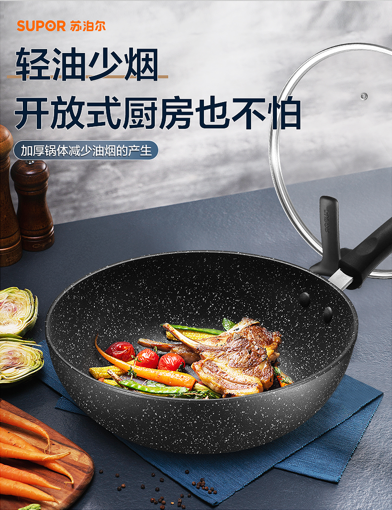 苏泊尔星石尚炒锅不粘锅炒锅近无烟燃气电磁炉通用NC30PA1