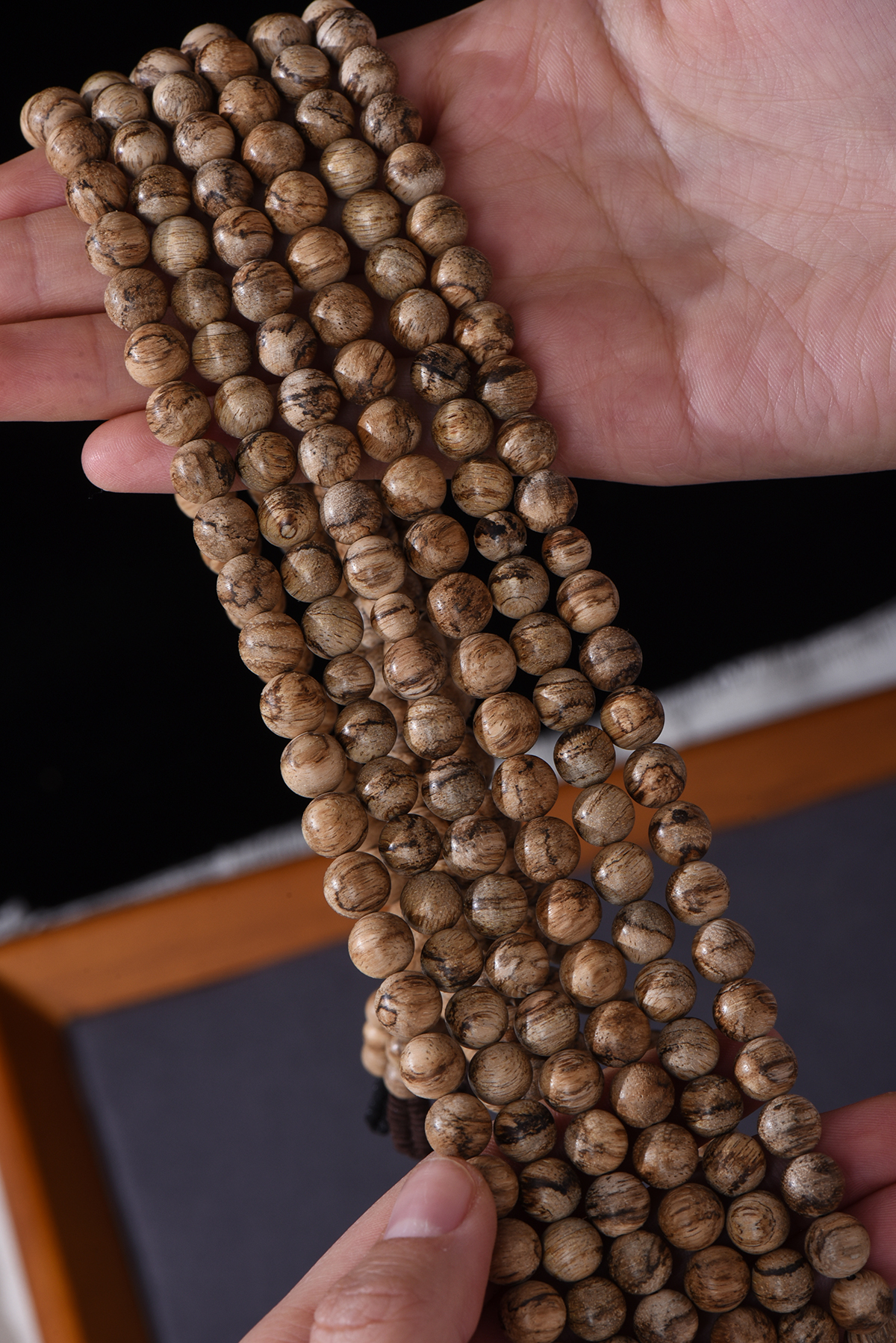 珠子表面能看到清晰的 “油花状” 纹路,有的还带着淡淡的虎斑质感,上手摸起来细腻温润,完全不干涩。