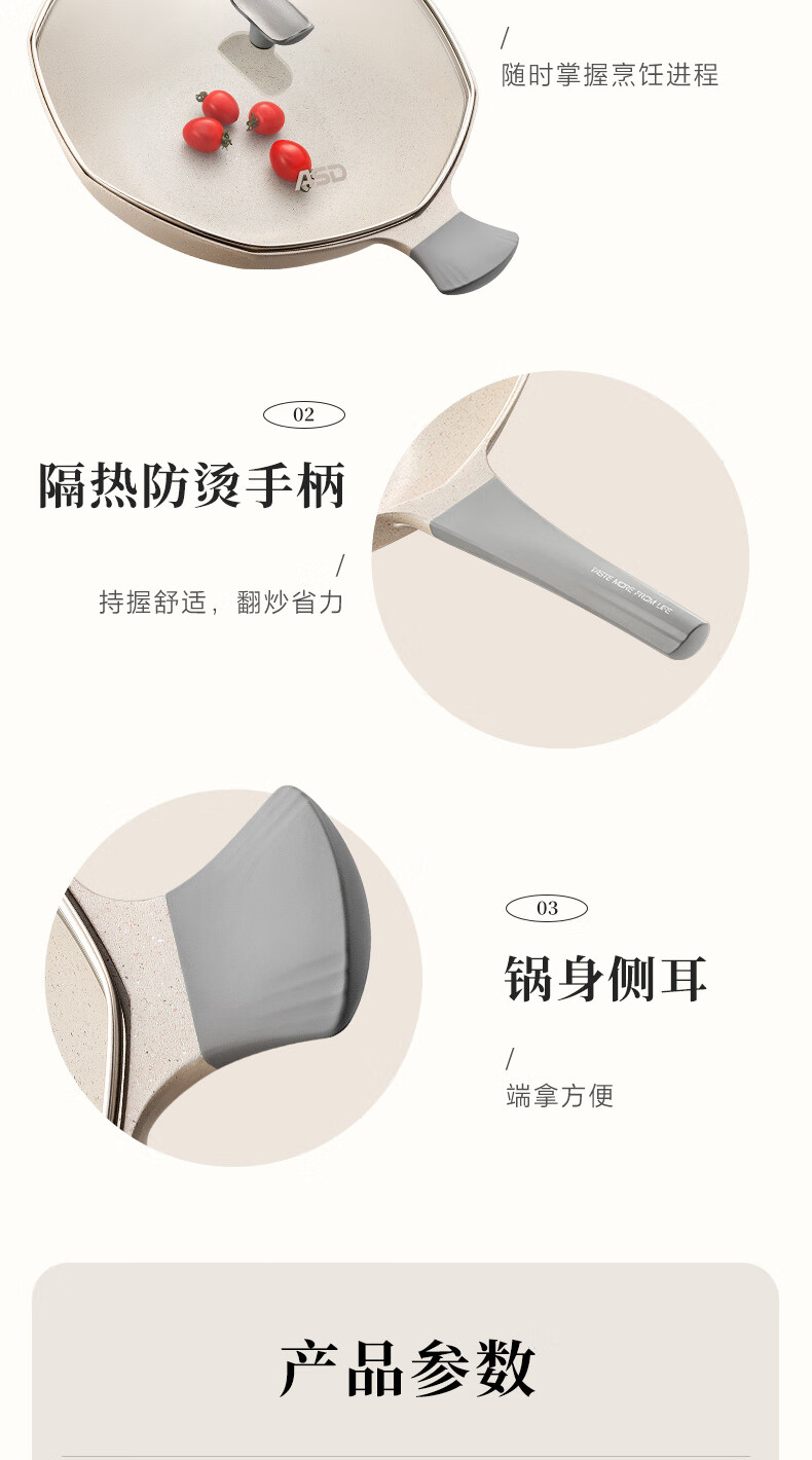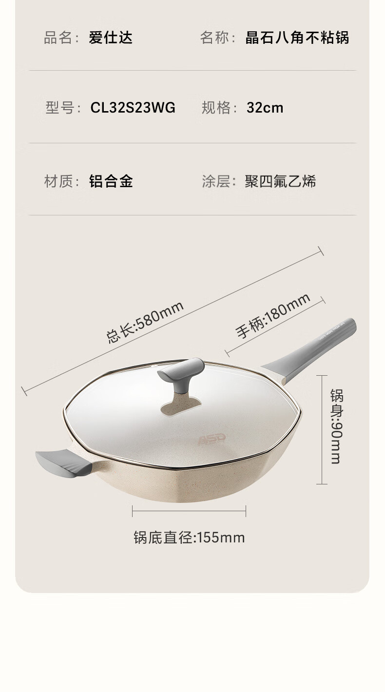 爱仕达(ASD)炒锅 不粘锅晶石炒菜锅 32cm CL32S23WG