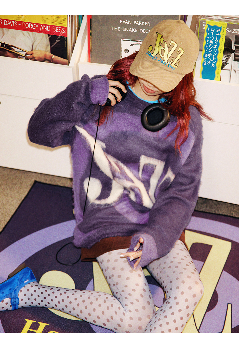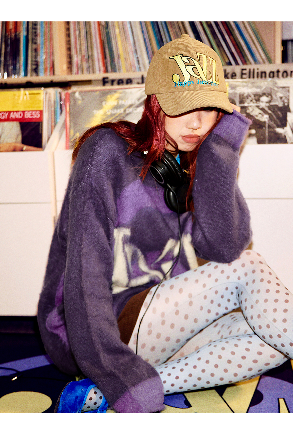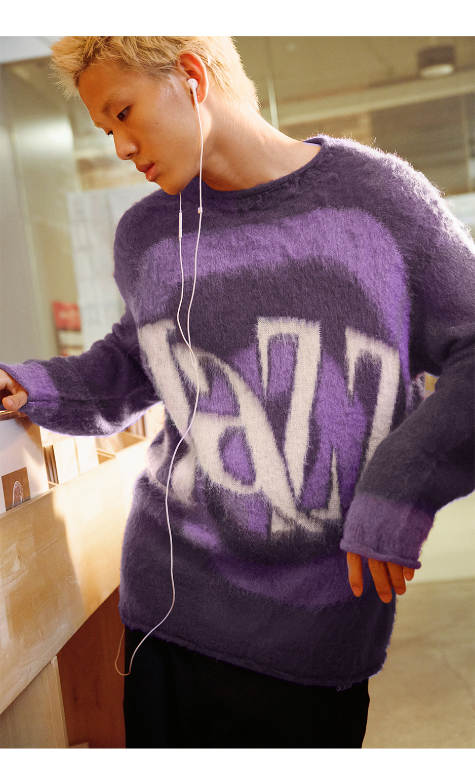 CryingCenter JazzDay含羊毛马海毛漩涡音场提花卷边宽松毛衣