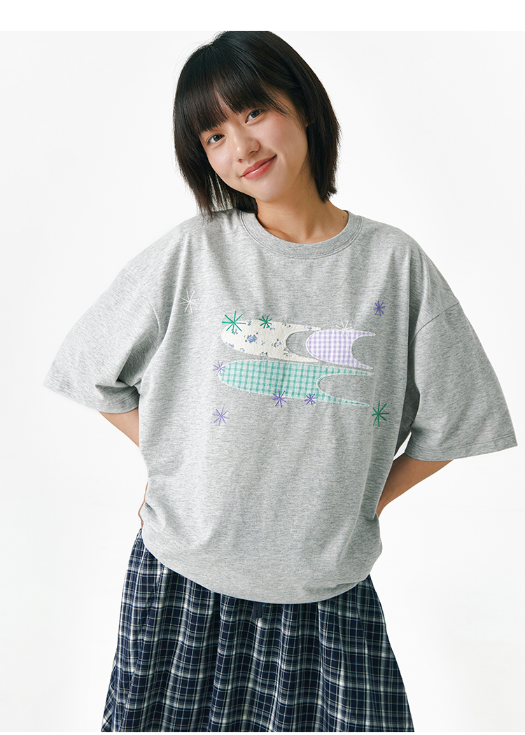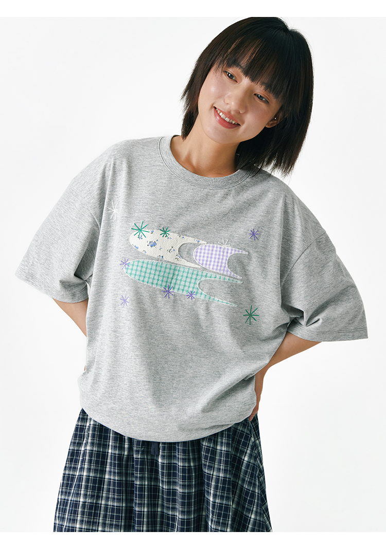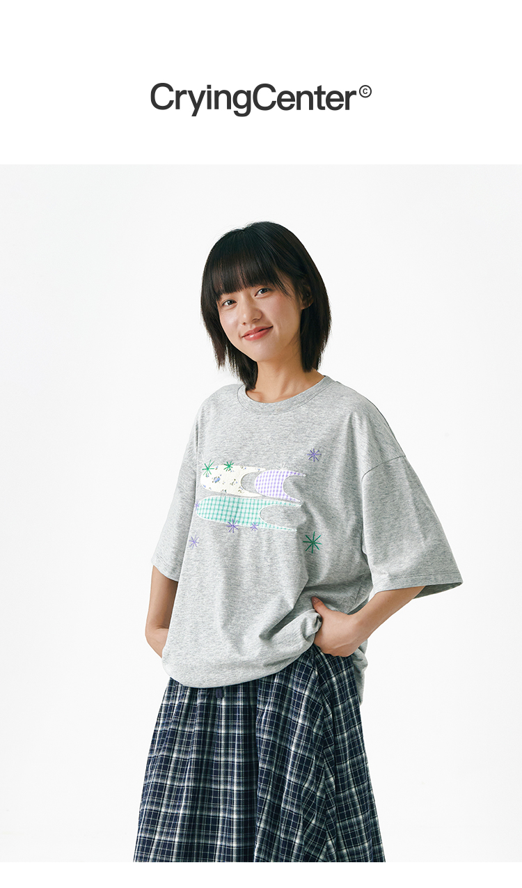 CryingCenter 星星碎花拼布3Clogo 点纱宽松T恤短袖 哭喊中心