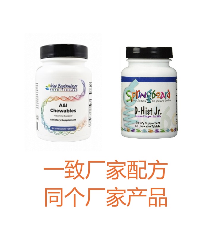 A&I Chewable 和 D-Hist Jr 产品是 一模一样的配方,同个生产厂家不同贴牌的产品。