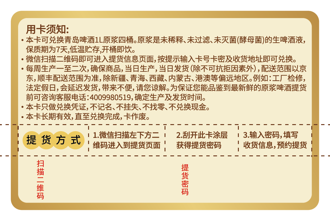 青岛啤酒1L*4原浆购物卡