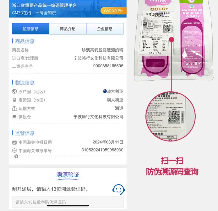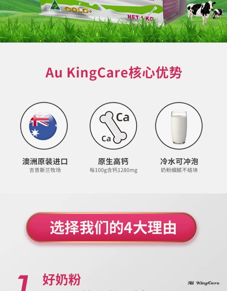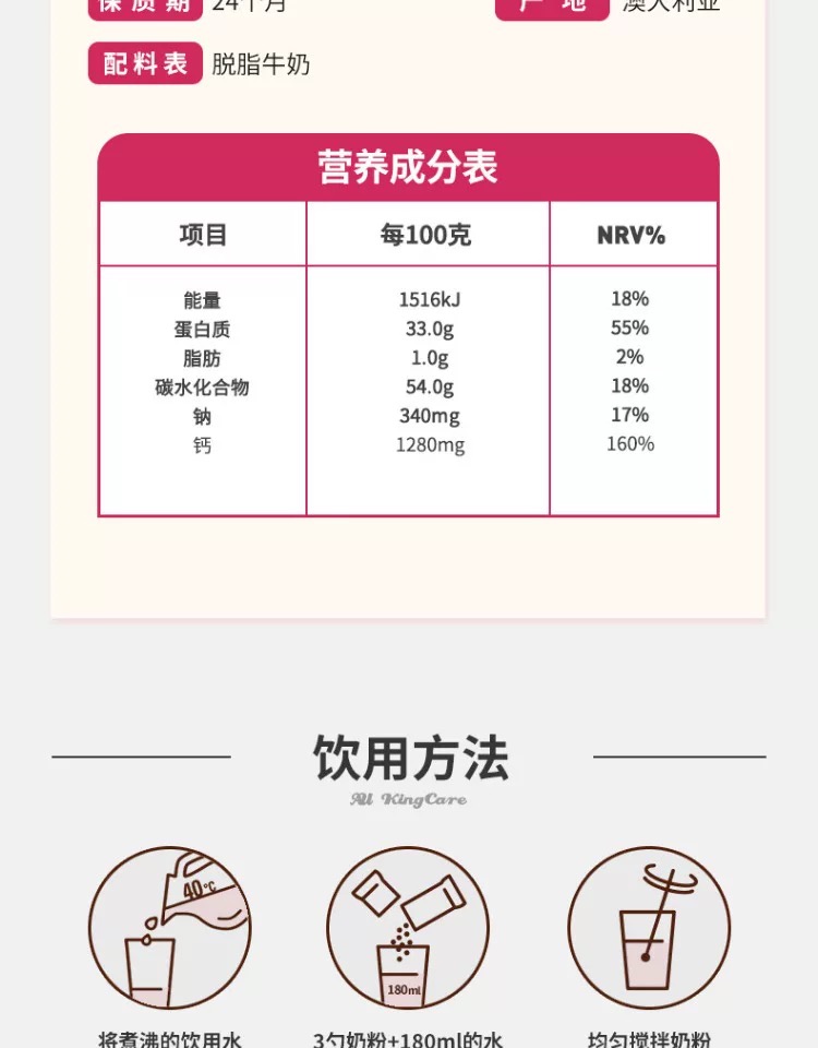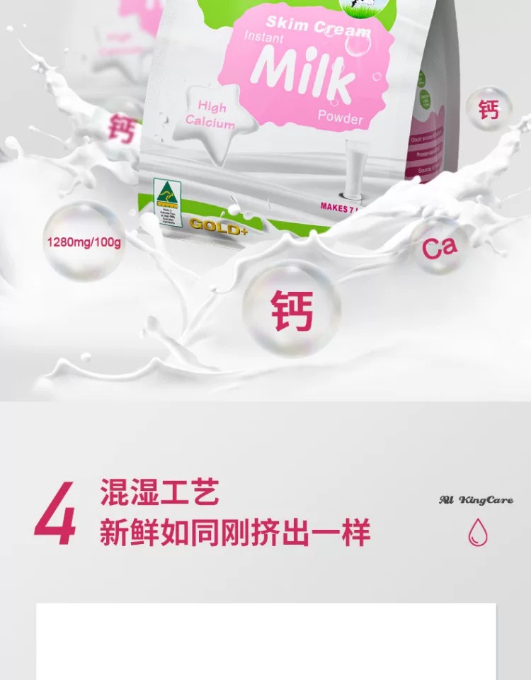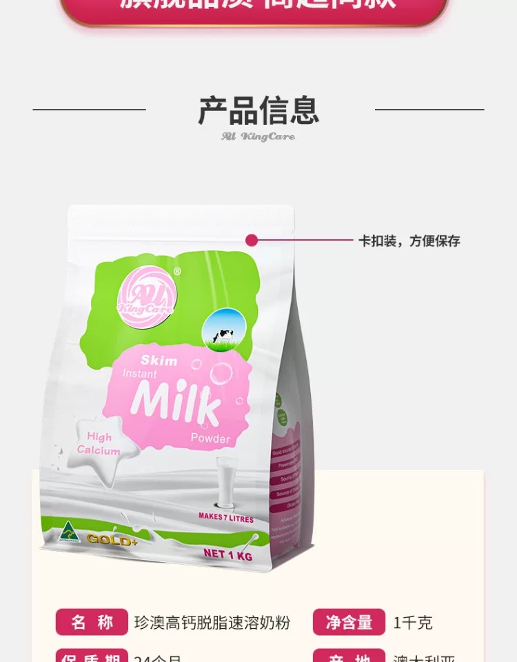 澳洲进口珍澳脱脂高钙速溶奶粉1KG卡扣装澳大利亚原装青少年成人