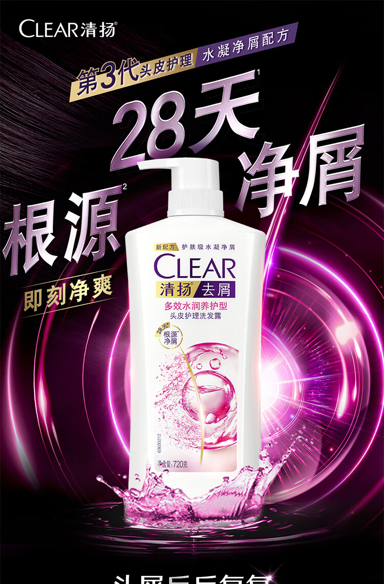 清扬(CLEAR)蓬松去屑洗发水 多效水润养护型720g