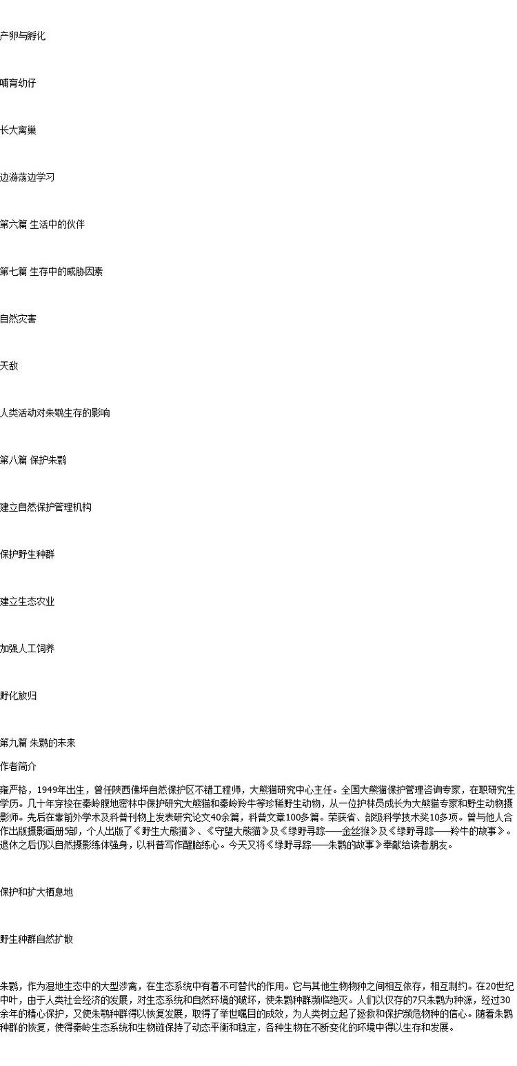 绿野仙踪 朱鹮的故事 9323 雍严格 认识朱鹮 生存环境 生态习性 繁殖 动物保护 科普读物 中国林业出版社 正版畅销书