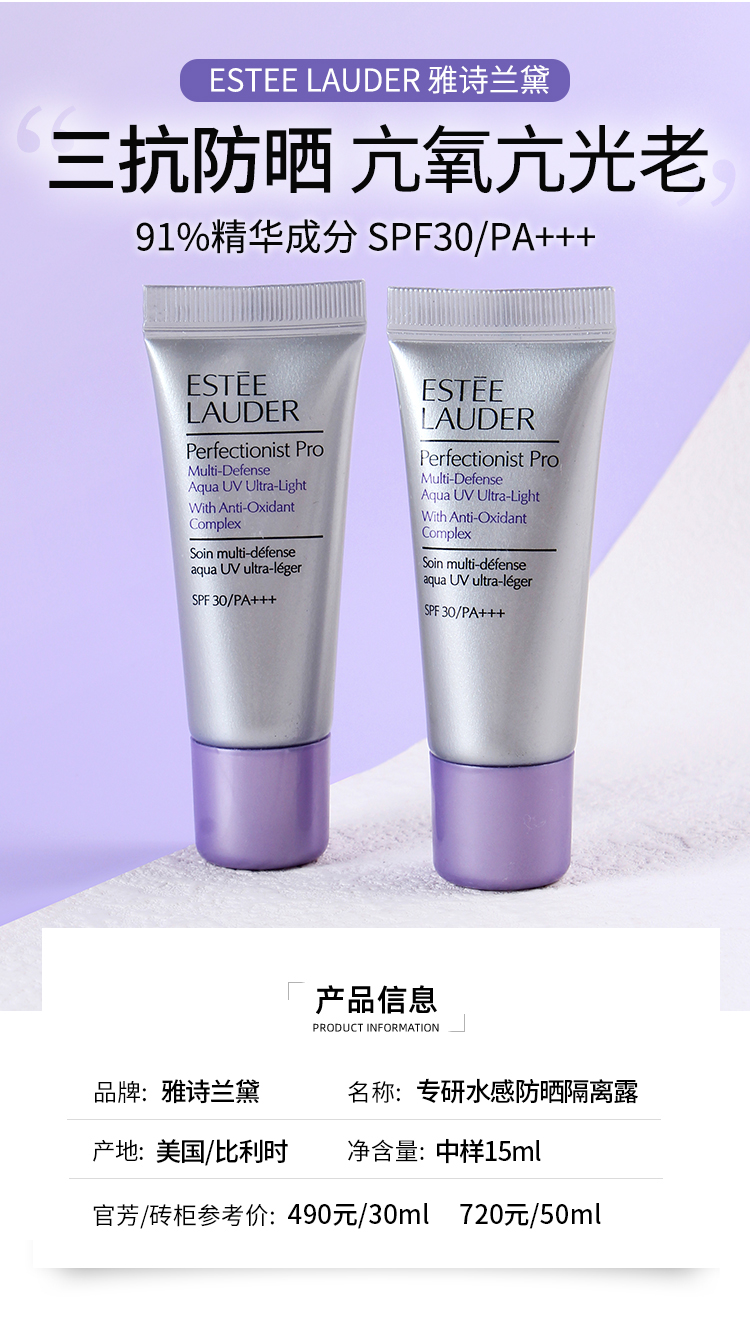 【保税仓】雅诗兰黛线雕防晒小样15ml*1/2支无盒 效期:2026/4/1
