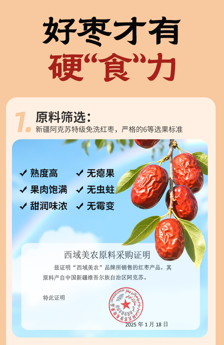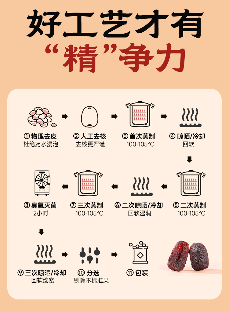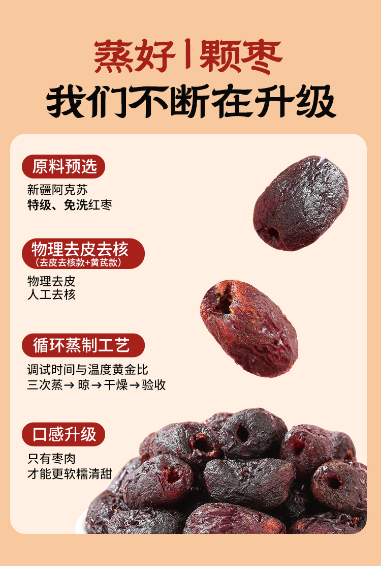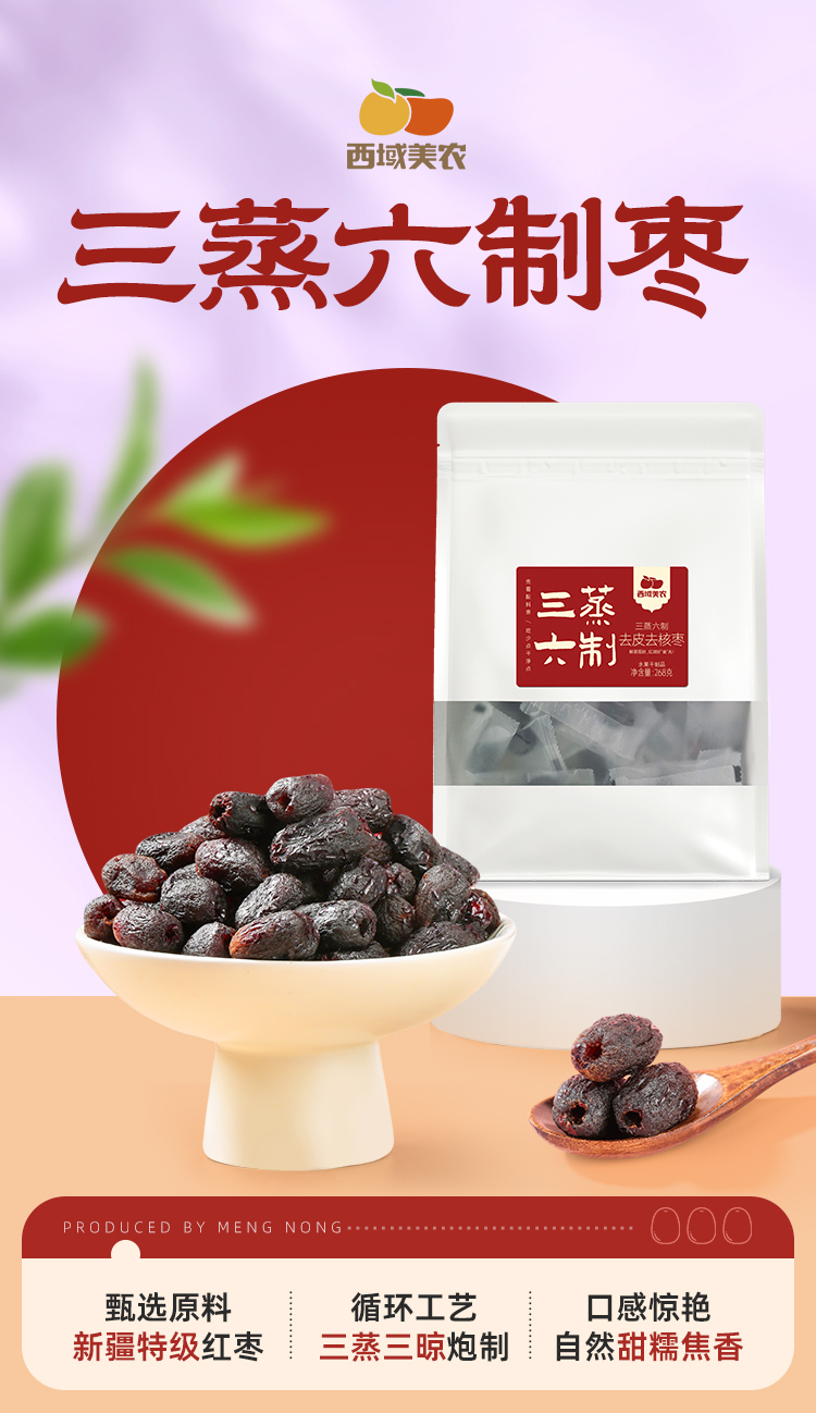 【到手3袋】西域美农三蒸六制黄芪枣 268g/袋 软糯甘甜 温而不燥 营养健康