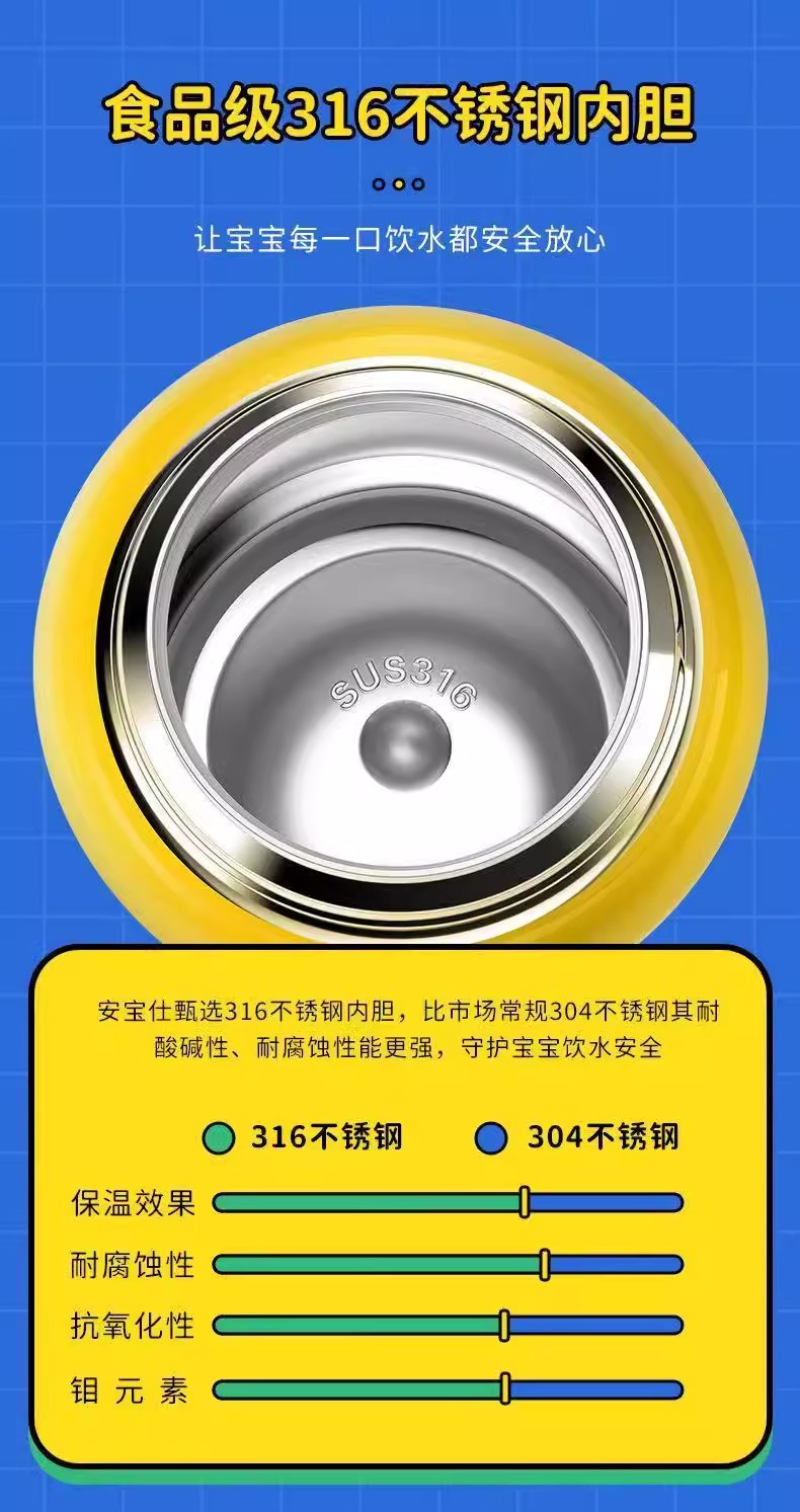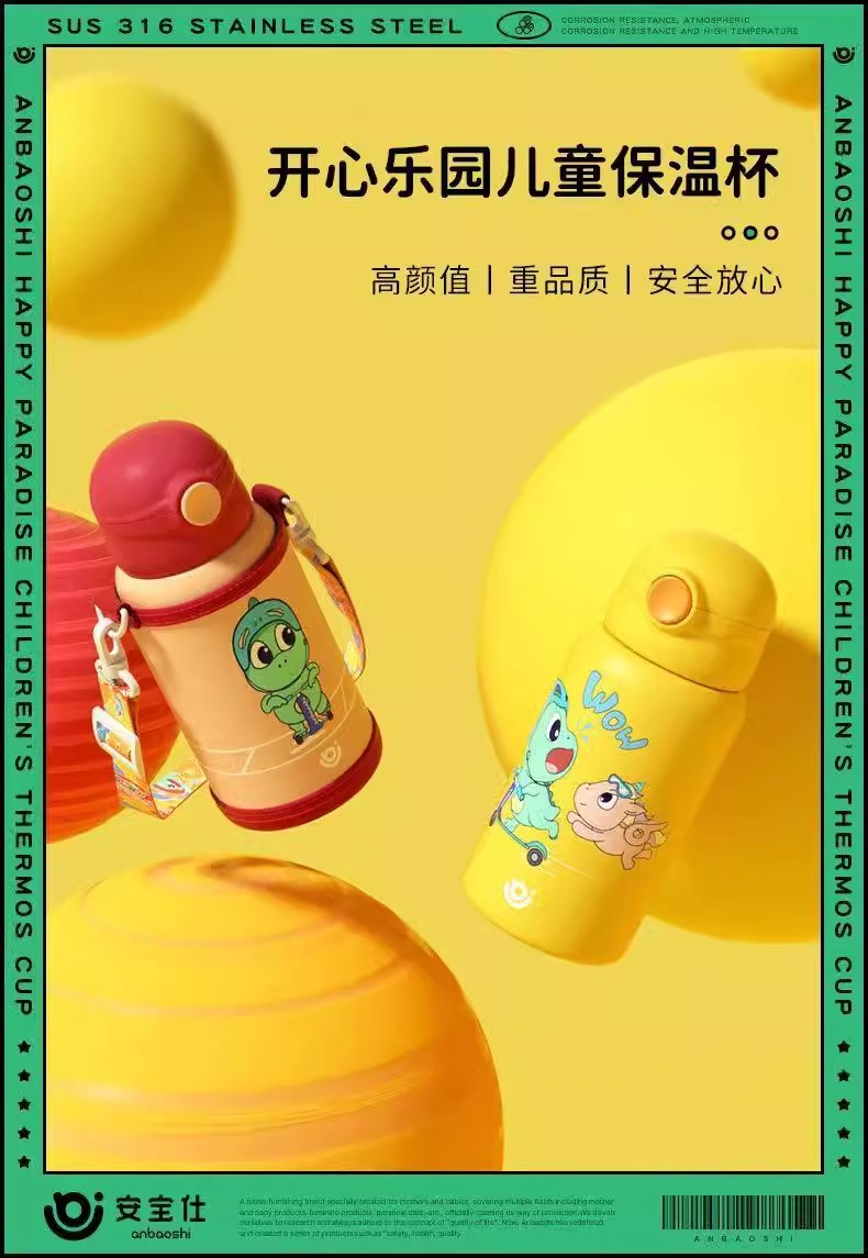 严选 | 安宝仕开心乐园儿童保温杯450ml 吸管便携杯316不锈钢 高配装 长效保温12小时