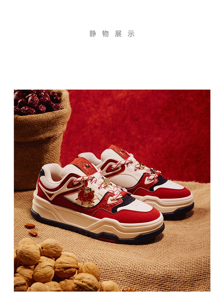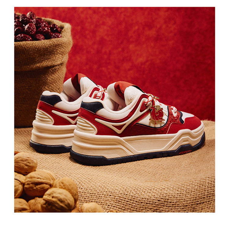 安踏芝士蛋糕板鞋女冬季新款厚底增高新年红经典面包鞋122618071