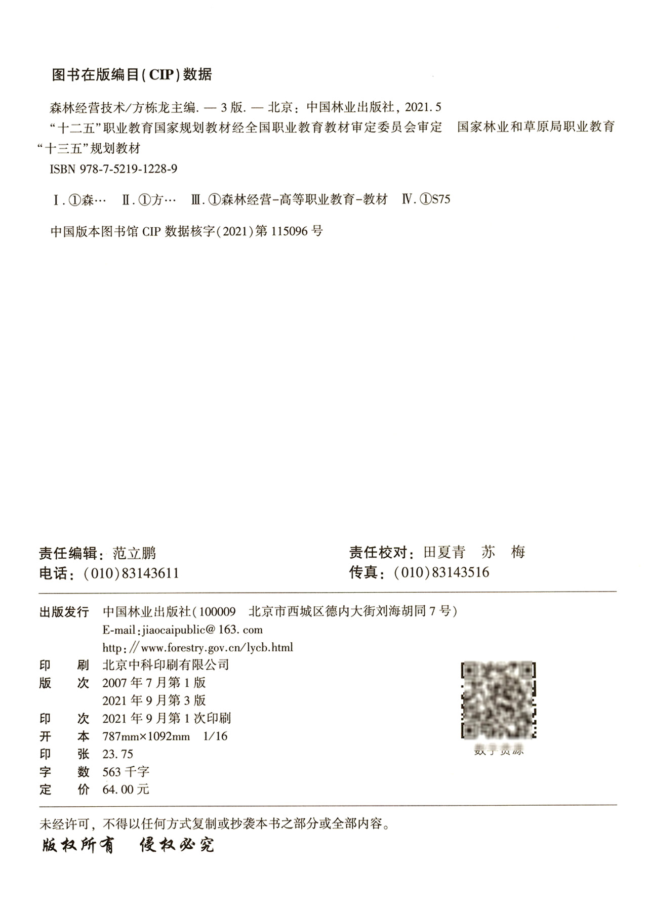 森林经营技术 第3版 方栋龙 国家林业和草原局职业教育十三五规划教材 1228 中国林业出版社