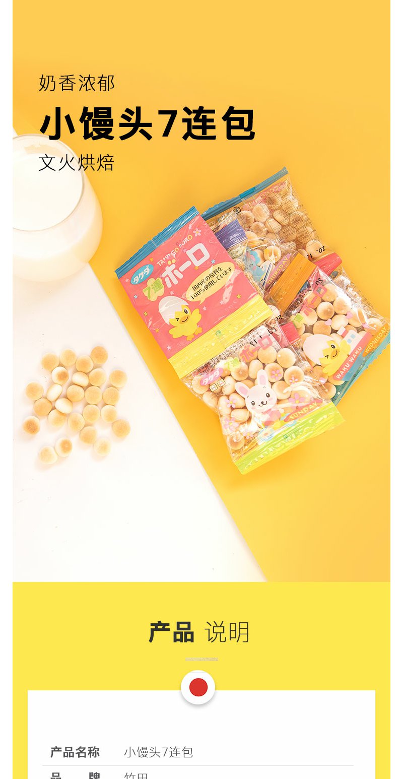 竹田 小馒头7连包 70g 奶豆磨牙 6条
