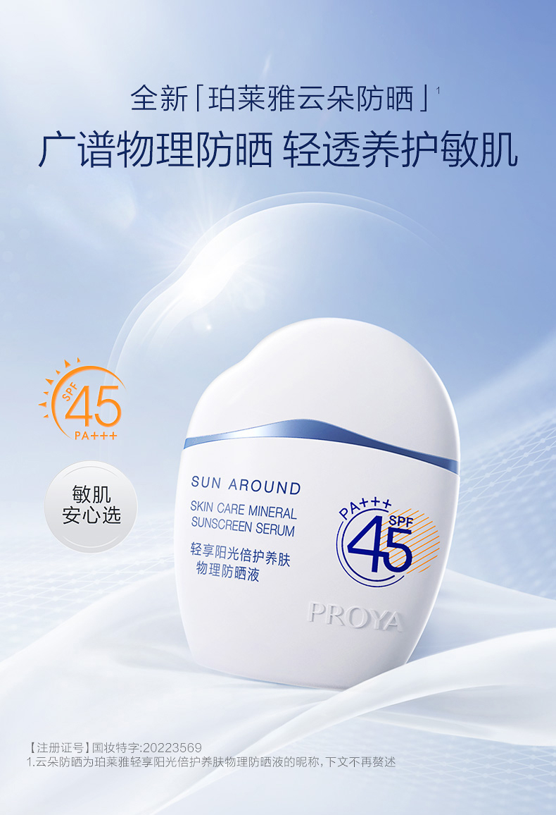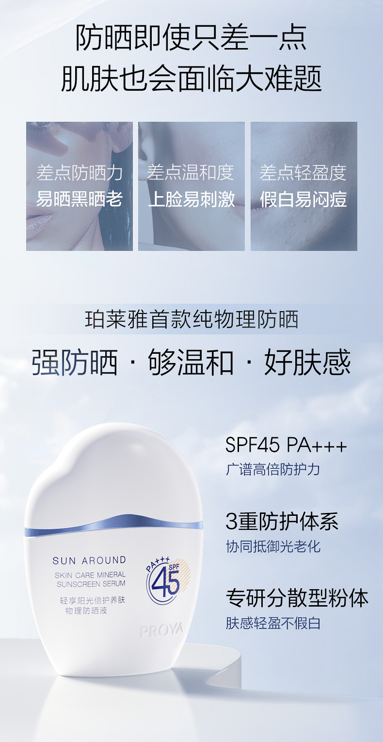 【双旦礼遇季】珀莱雅云朵防晒霜spf45纯物理防晒高倍防紫外线敏感肌0酒精温和
