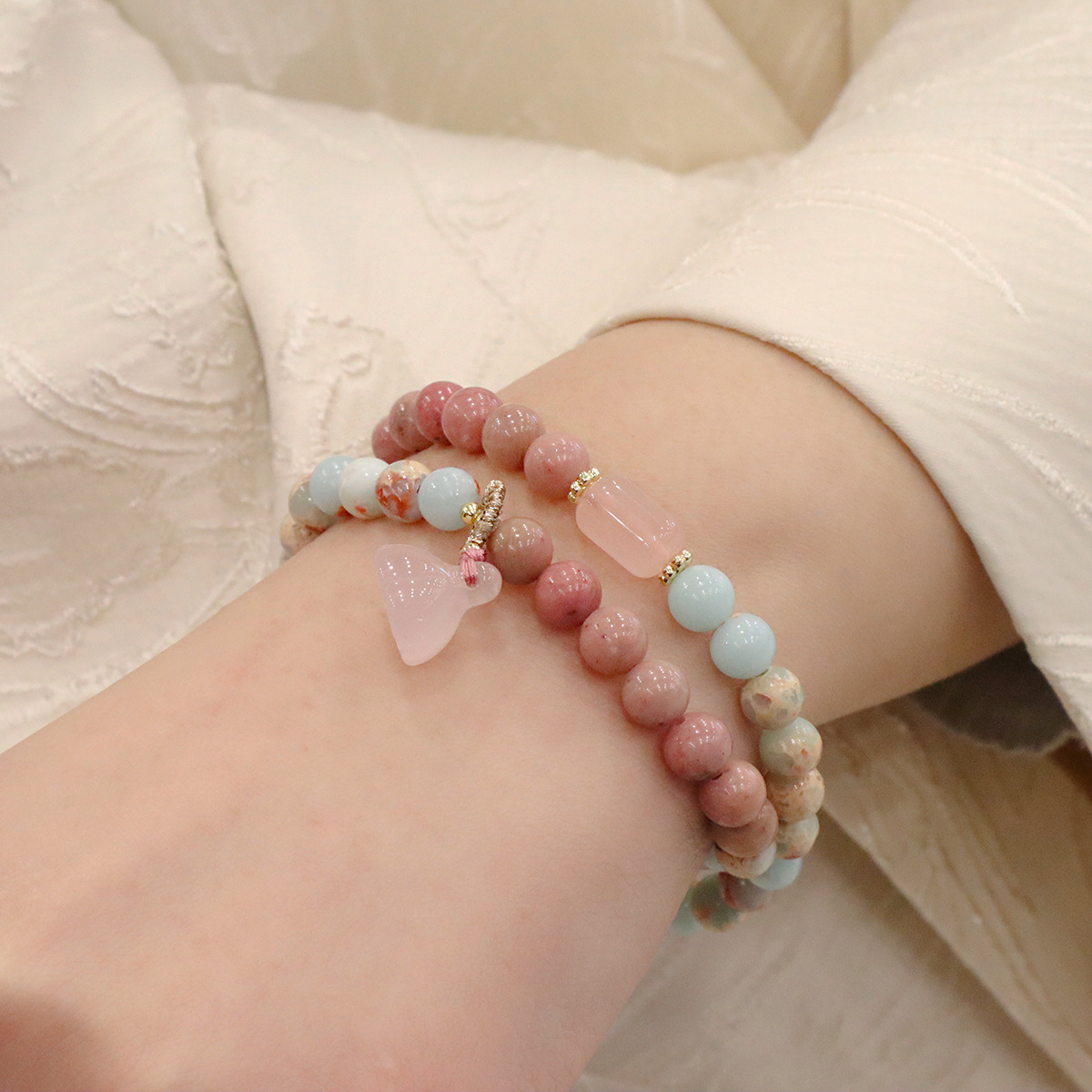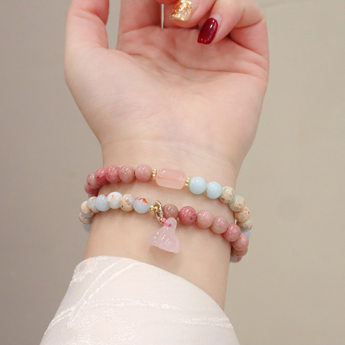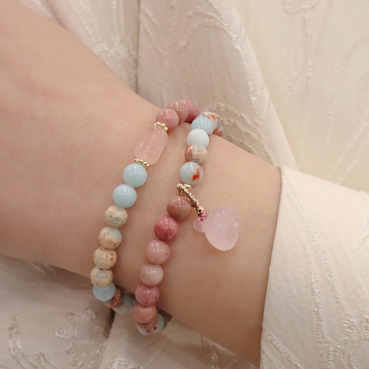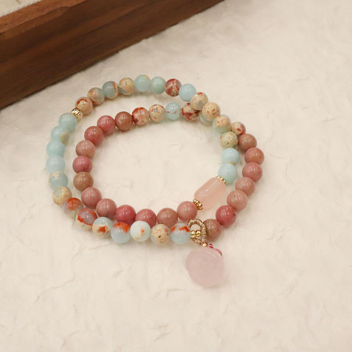 【敦煌莲梦·寿山石双圈手串】小众设计寿山石手链 粉水晶高级感手串女 莲蓬手链
