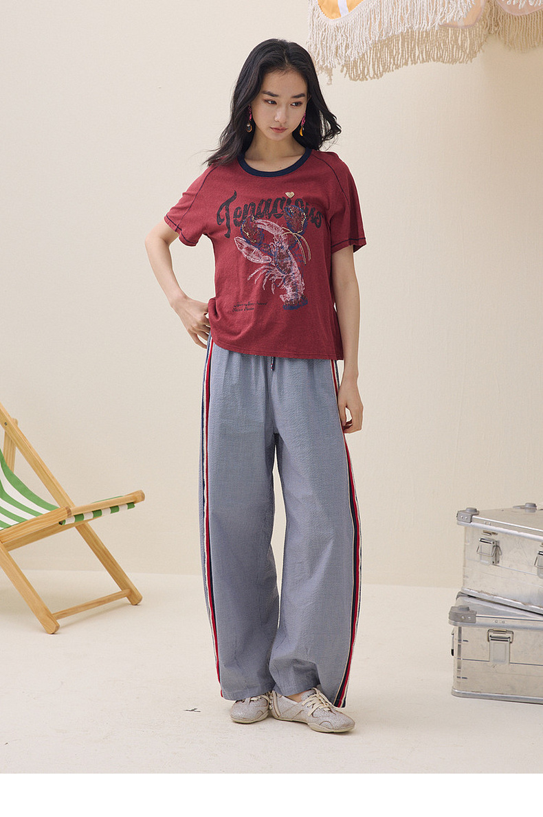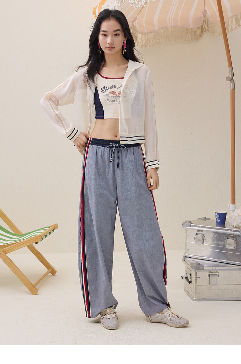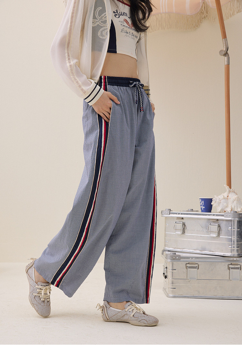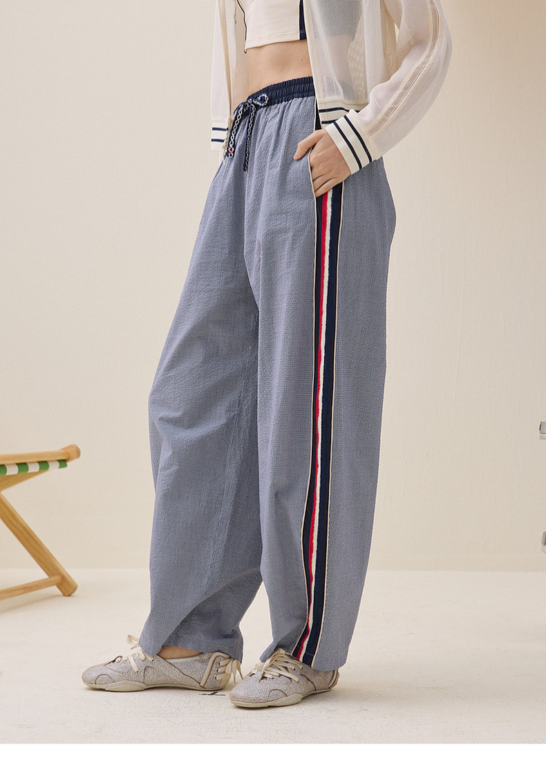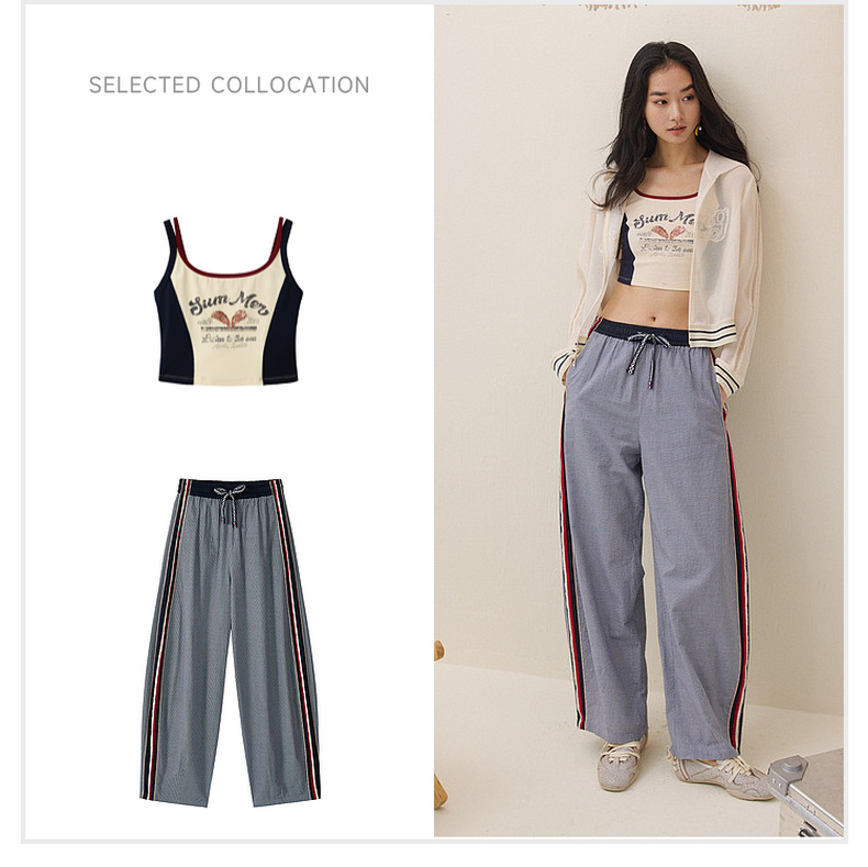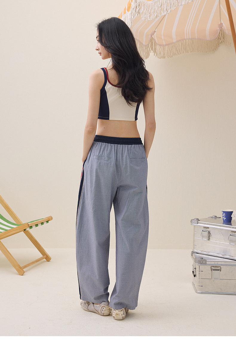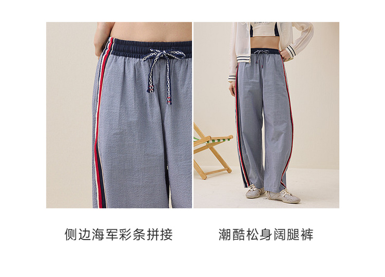 谜底撞色阔腿裤长裤2026夏季新品侧边拼接松紧腰抽绳女262MK0516