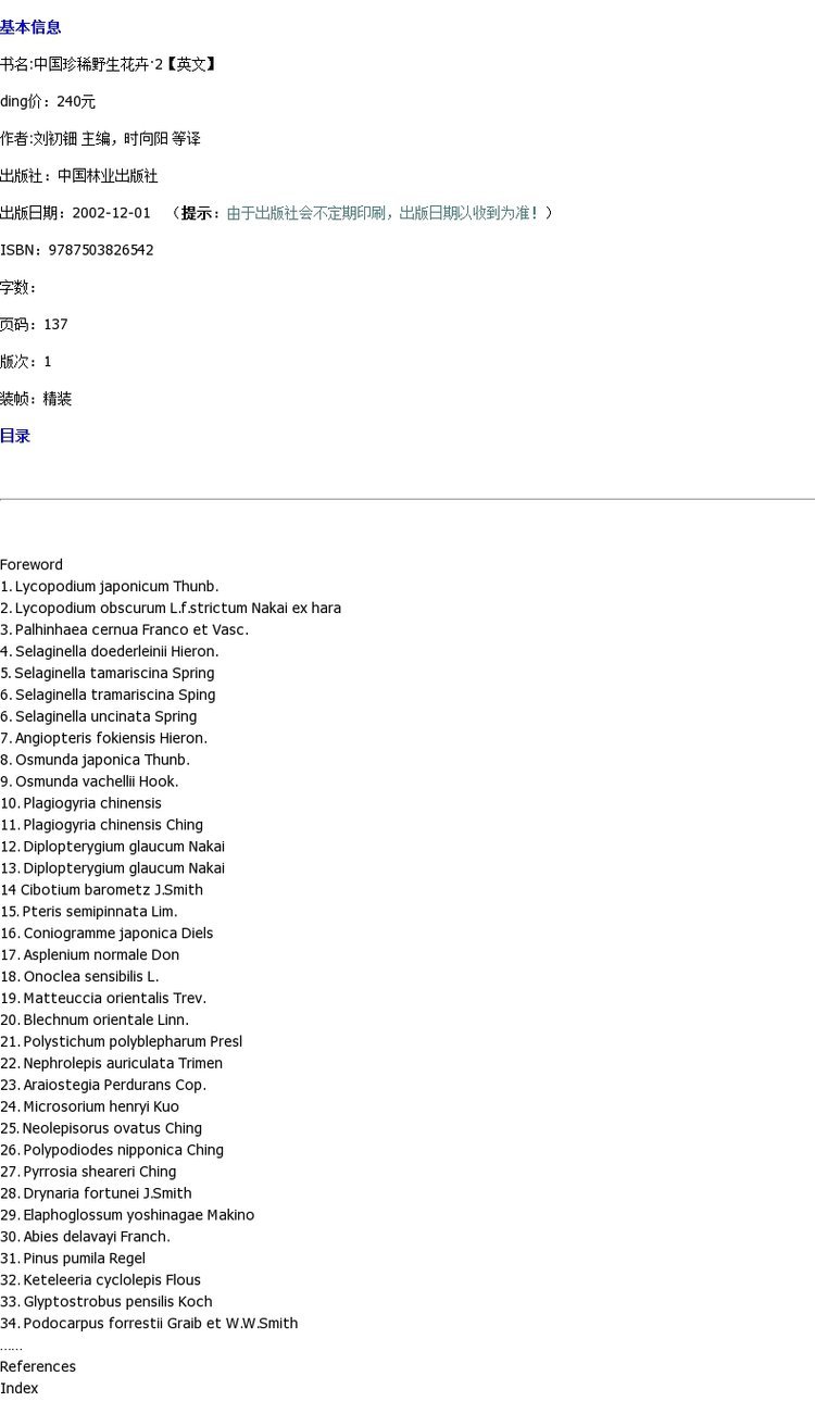 中国珍稀野生花卉2英文2654 植物学RARE AND PRECIOUS WILD FLOWERS OF CHINA2中国林业出版社正版畅销书籍