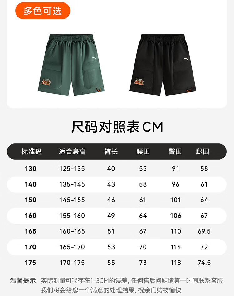 安踏儿童梭织五分裤男大童冰锋科技梭织五分裤352536502