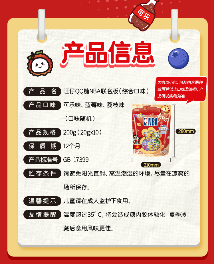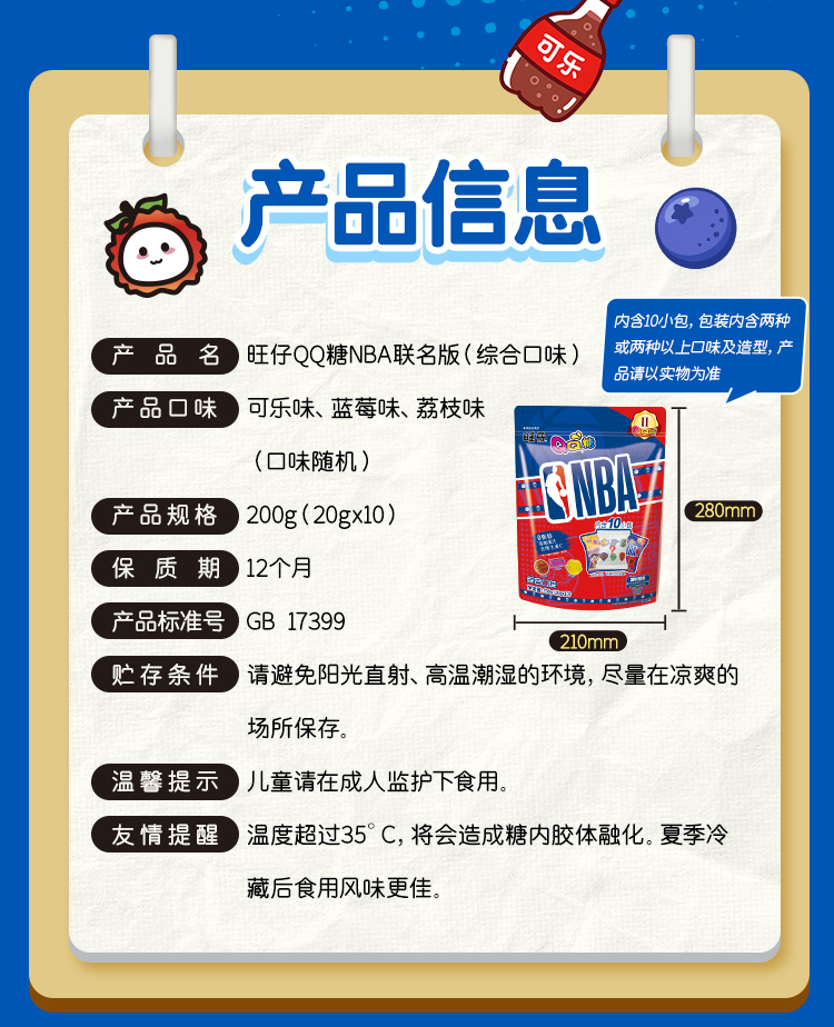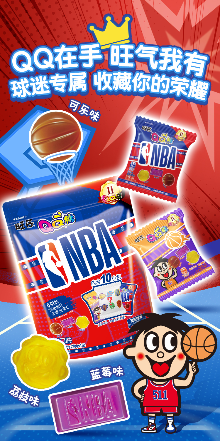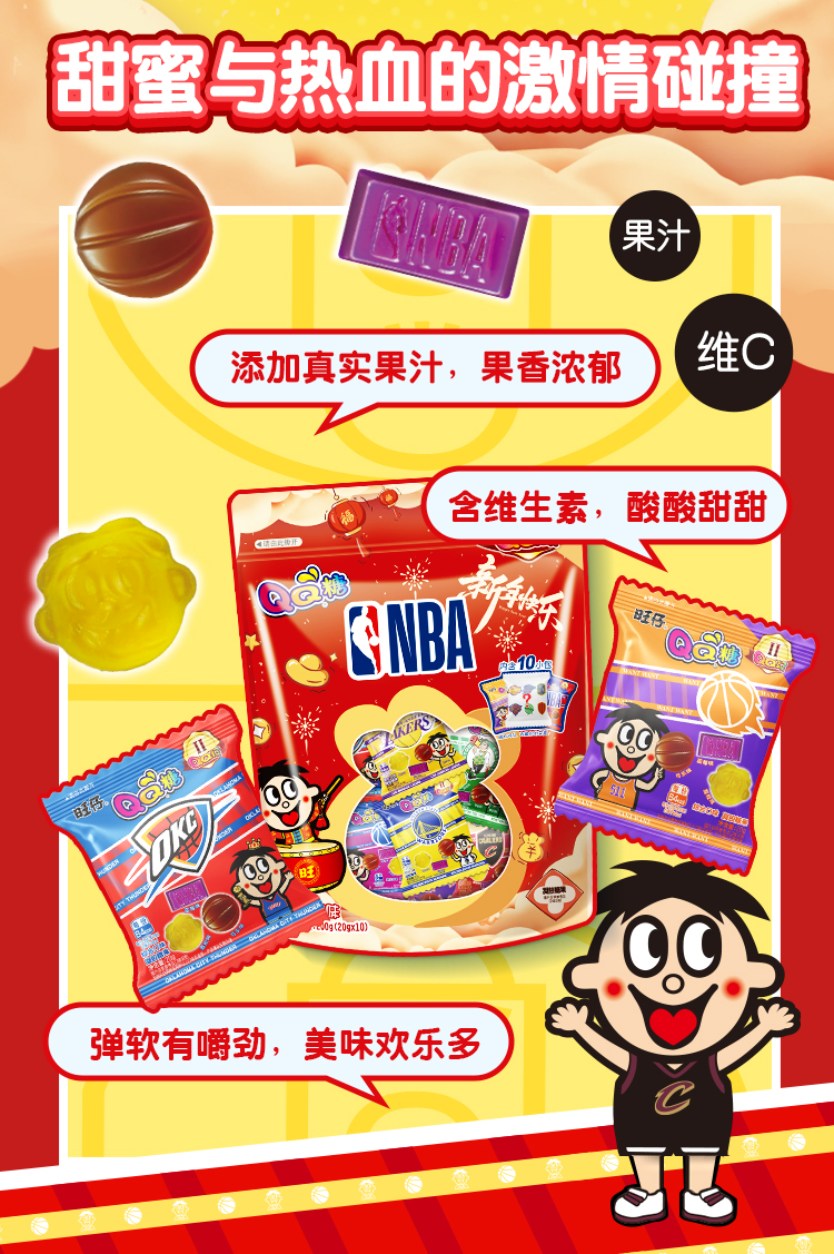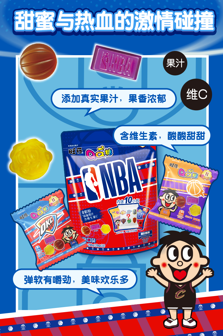 旺仔×NBA联名版QQ糖 球迷专属独立小包装 综合口味200g