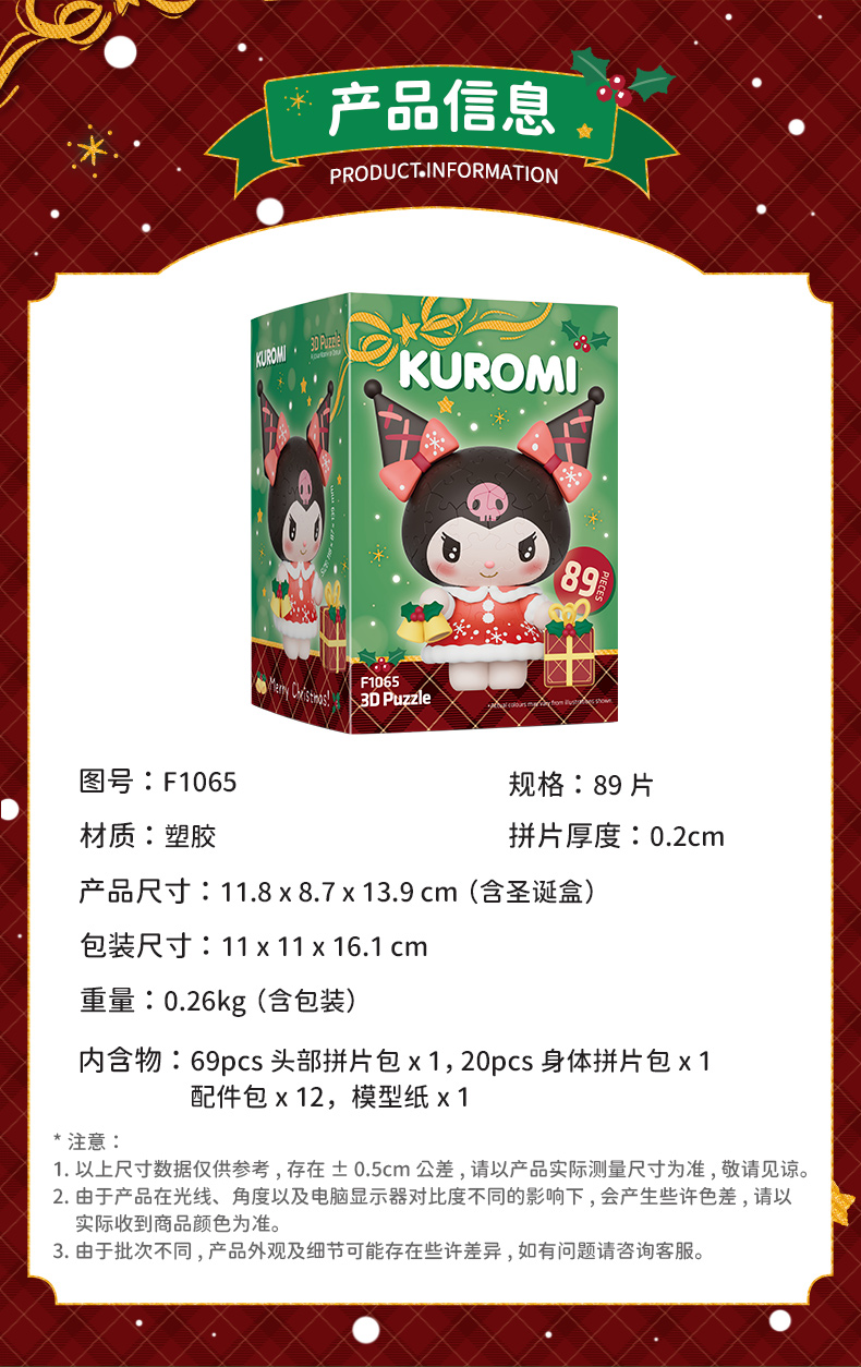 89片 立体造型拼图 F1065 圣诞之铃-三丽鸥家族系列Kuromi