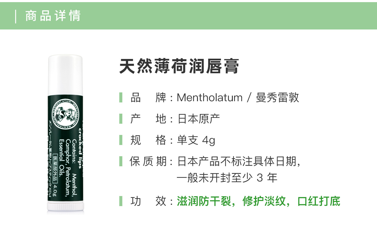 【保税仓】Mentholatum曼秀雷敦保湿薄荷润唇膏4g支