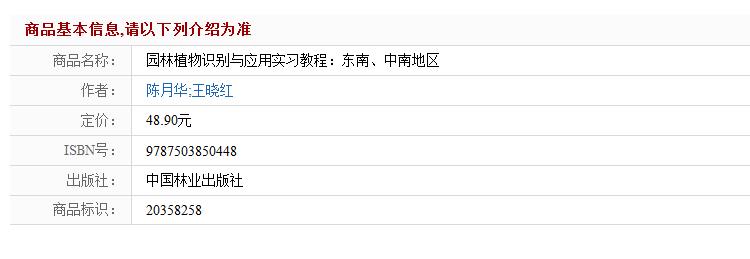 园林植物识别与应用实习教程 东南 中南地区 5044 中国林业出版社